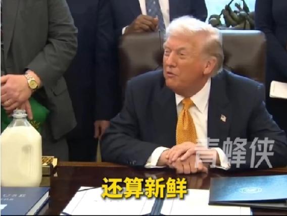 服了,非常朗普!不就是签署一个法案吗?还动了这么大阵仗,男女老幼齐上阵的同时,非常朗普还不忘拿摆媒体一道。非常朗普说:这里有些牛奶,放了五天了,我带过来给媒体喝的,你们随便喝,还算新鲜,也就放了5、6天。 看了这位非常朗普的表演,还别说,真有那么一点“嬉笑怒骂皆成文章”的感觉!而且,还有一种感觉,就是作为一个美国总统,还真的有点累,一个关于学校喝什么奶的问题,竟然也要总统签字。