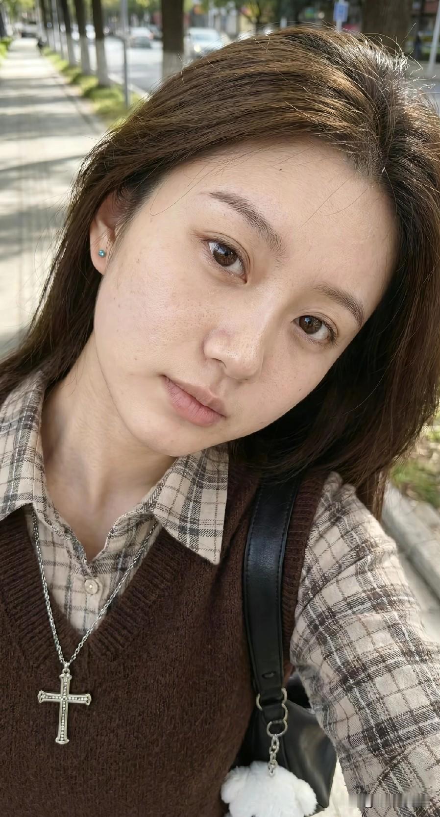 夜晚的灯光下,少女温柔的眼神令人心动。