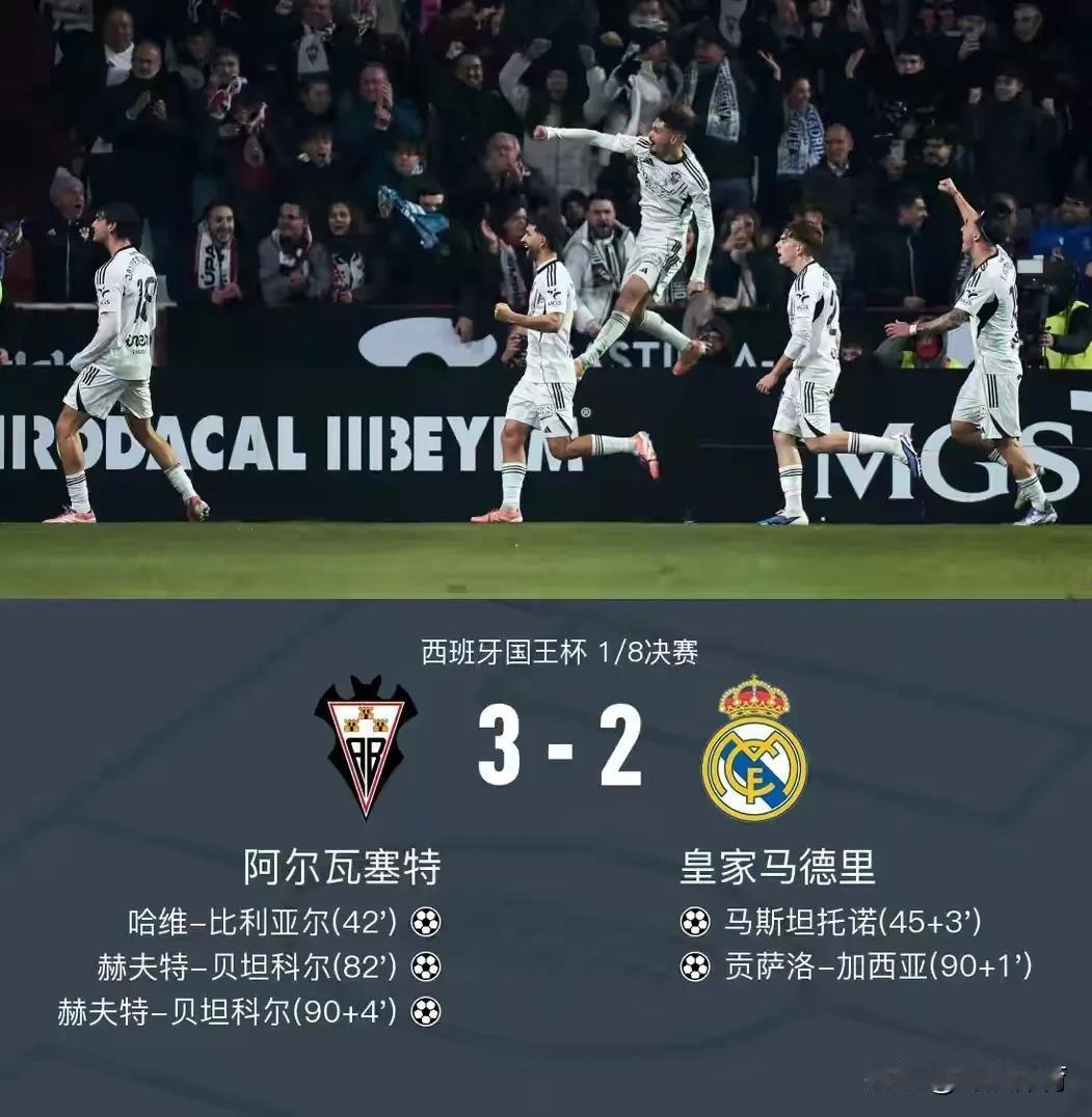 皇马刚换帅,就在国王杯被西乙第17的阿尔瓦塞特3-2绝杀淘汰! 首秀啊,阿韦洛
