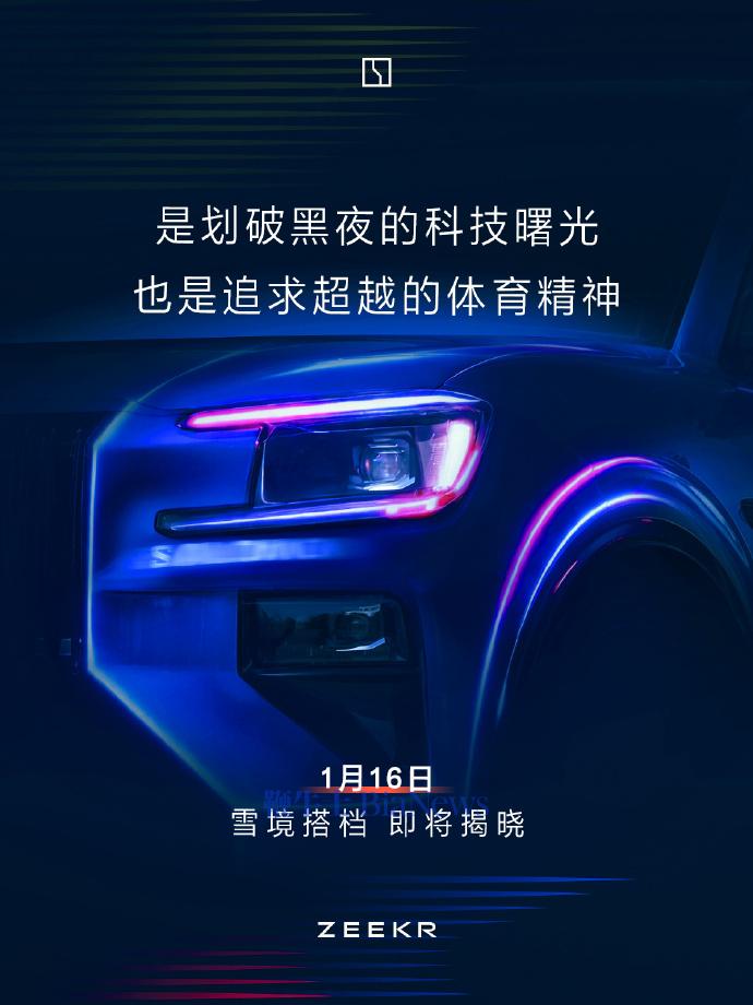 极氪汽车今日官宣“新朋友”即将登场。海报配图似为“雪境搭档”极氪8X。