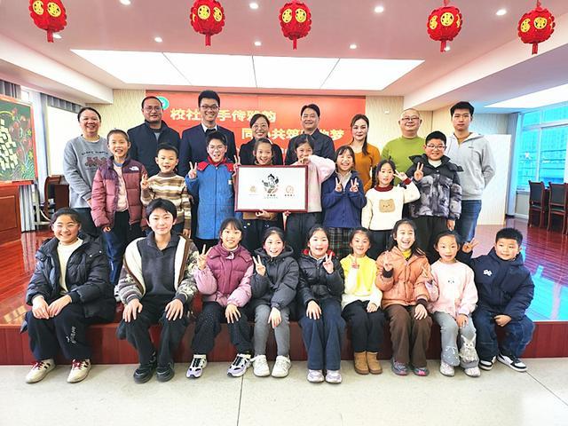 在全场师生的见证下,三方代表共同为“小徽班”戏曲传承基地揭牌。红布缓缓落下,标志着合肥市杏林小学“小徽班”戏曲传承基地正式成立,也开启了校社携手传承戏曲文化、深化美育实践的新篇章。