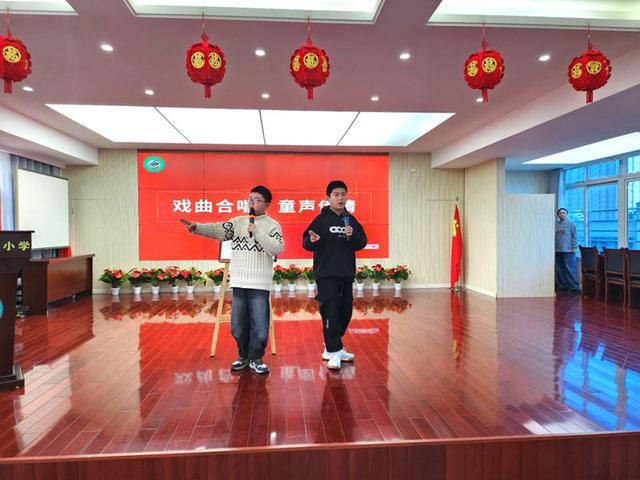 徽京剧院青年演奏员柳锡武现场为学生们演奏了《夜深沉》,琴声悠扬,让同学们再次领略了京胡演奏艺术的独特魅力,加深了对传统戏曲的认知与喜爱。讲座结束后,六年级学生代表献上了精心准备的戏曲合唱节目,以饱满的热情、嘹亮的歌声演绎了经典戏曲片段,展现了新时代少年对传统戏曲的传承与热爱,赢得了现场嘉宾与师生的一致好评。
