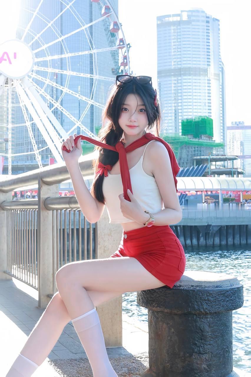红衫映湖漾活力澄澈蓝天揉着流云,湖畔的青草漾着清新的气息,一抹亮眼的红撞入