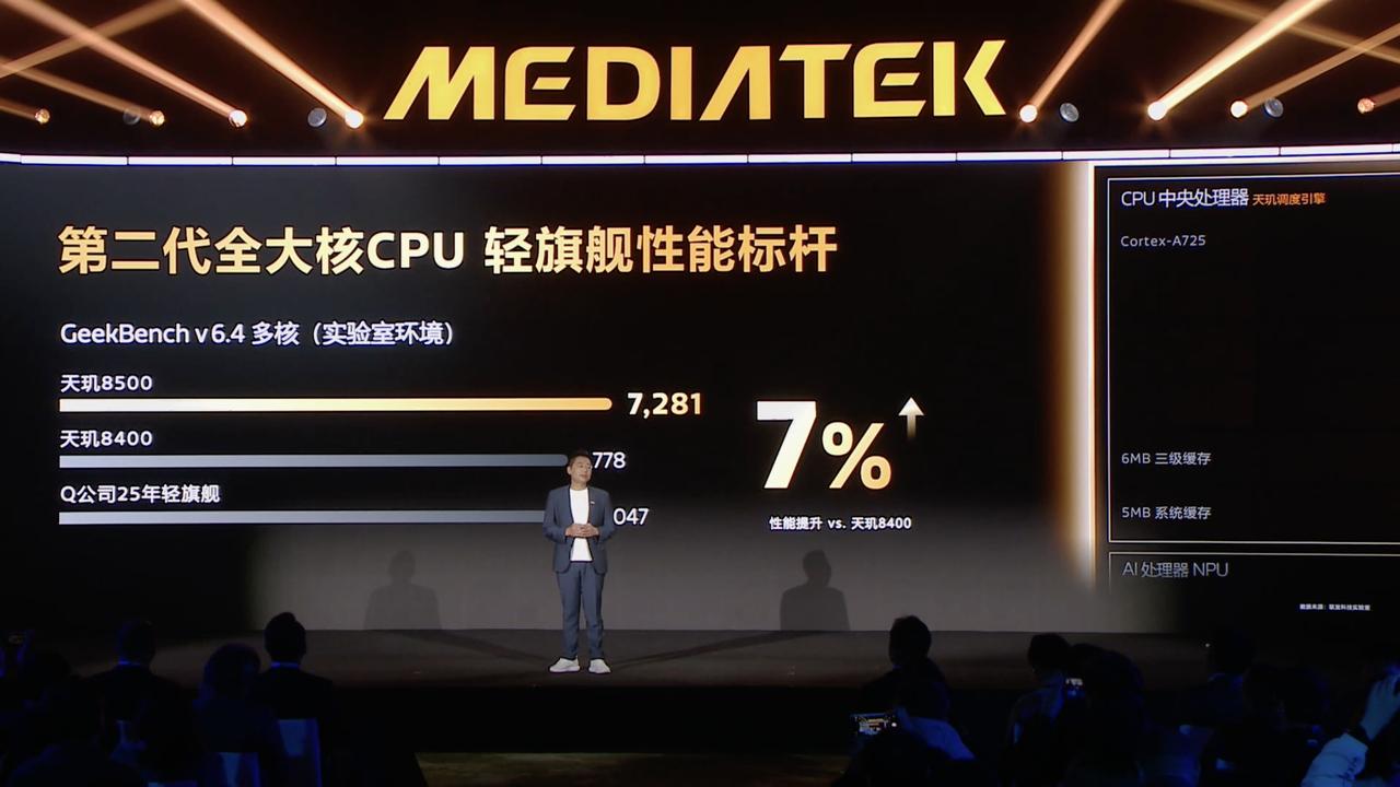天玑 8500 处理器正式亮相,看了眼架构信息,搭载第二代全大核 CPU × 天玑调度引擎,性能对比上代提升 7%;搭载八核 GPU,峰值性能相较上一代提升25%,功耗相较上一代峰值性能下降低20%,看来GPU是这一代的SOC亮点。而且这一代天玑8500光追落地主流移动游戏,有点期待各家厂商的调校了