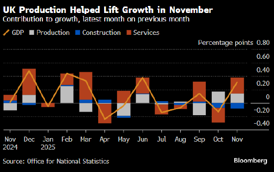 英国11月经济增速好于预期,缓解了外界对2025年底经济疲软的担忧。