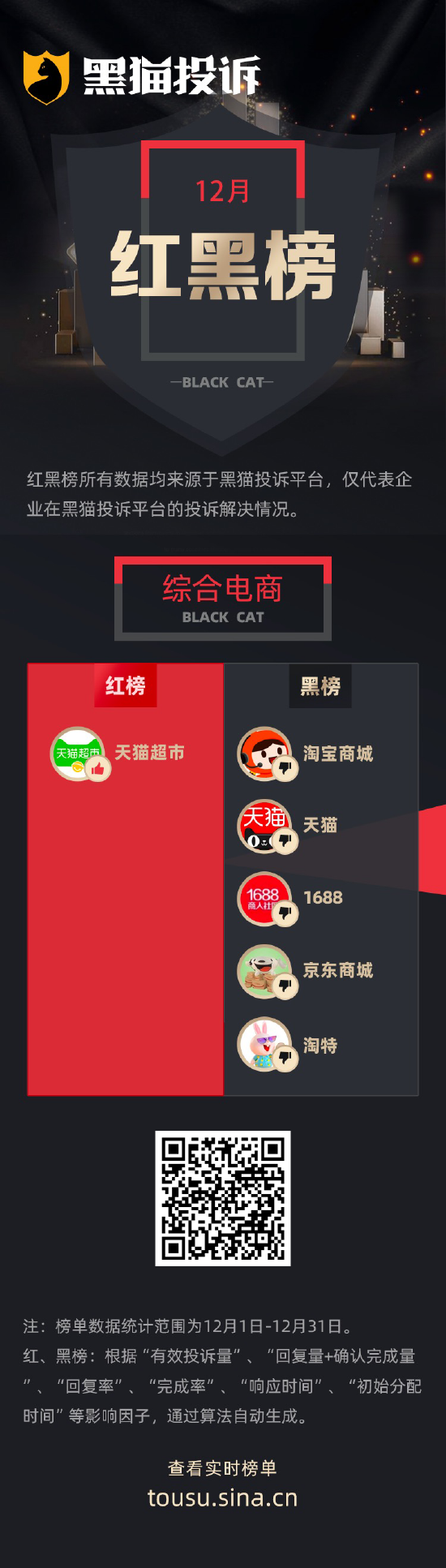 黑猫投诉12月行业红黑榜单