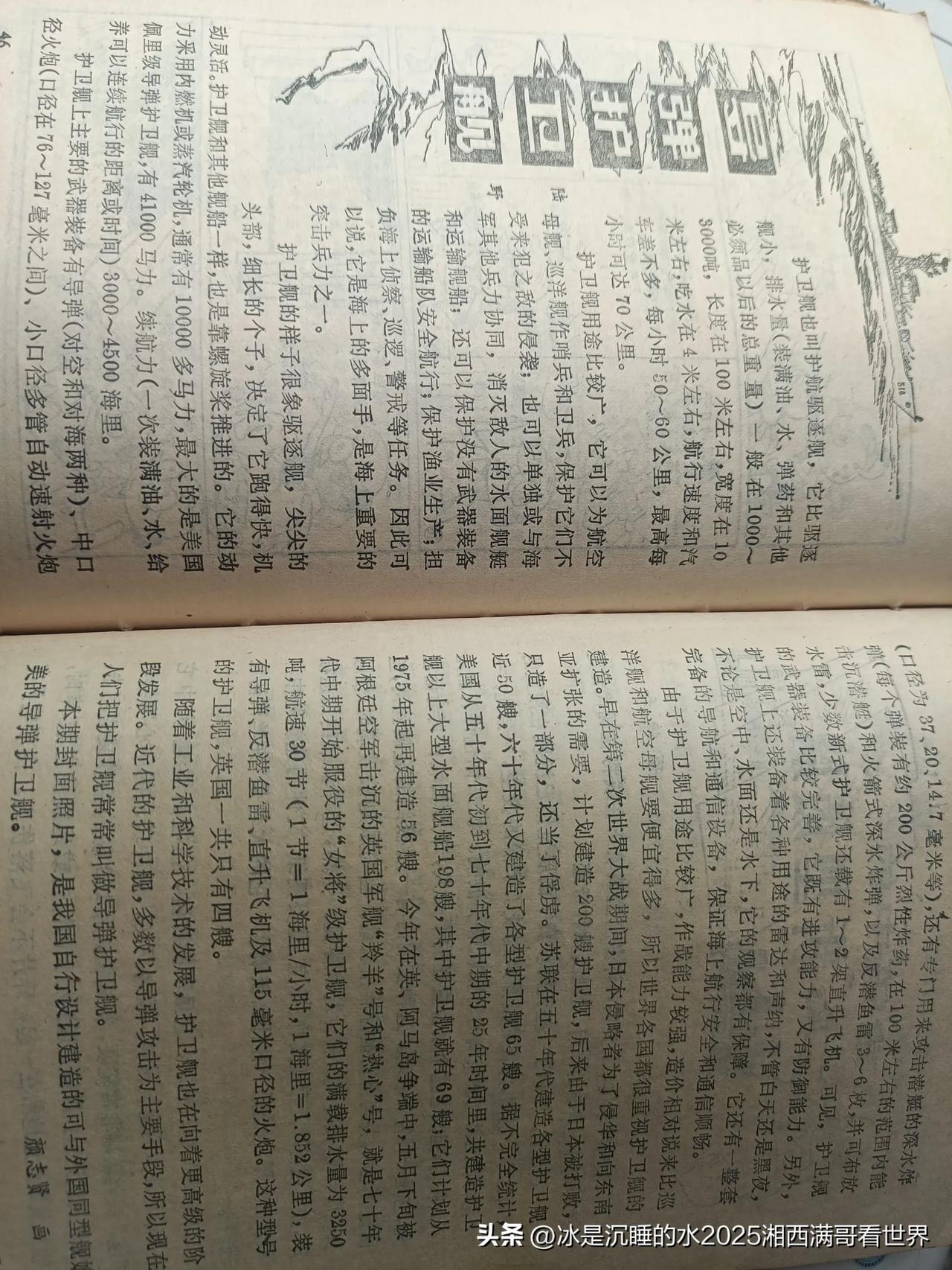 分享一组我小学的宝贝1982年第8期《少年科学》的封面、封底以及部分文章的精彩靓图。 封面是中国海军当时舷号513的精锐导弹护卫舰英姿勃发的照片。当年还不懂,成人之后才知道是国产053H1对海导弹护卫舰,🈶“海鹰-2”反舰导弹,100毫米口径舰炮、37毫米火炮以及相应的雷达、电子设备,满载排水量1700吨,1981年建成服役,是中国海军当时最先进的导弹护卫舰。 本期专门有篇《导弹护卫舰》的文章,通俗易懂,简要的介绍了世界各国海军的护卫舰知识,包括1982年英阿马岛战争中阿根廷空军击沉英国军舰“羚羊”号、“热心”号,这是我当年第一次接触到现代海战的相关信息,引起对现代化海军强烈的兴趣。 《少年科学》由上海市印刷十二厂印刷,上海市报刊发行处发行,定价:0.2元。 时光真快,当年的053H1导弹护卫舰早就退役,现在最新的型号是满载排水量高达5000余吨的054B级导弹护卫舰,中国海军实力也跃居世界各国海军前列,这是当年无法想象的巨大进步。少年科学杂志