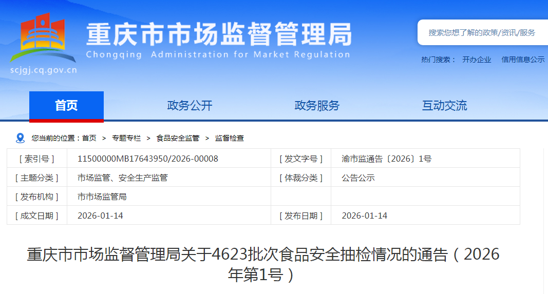 近期,重庆市市场监督管理局组织抽检饼干、餐饮食品、茶叶及相关制品、炒货食品及坚果制品、淀粉及淀粉制品、豆制品、方便食品、蜂产品、糕点、罐头、酒类、可可及焙烤咖啡产品、冷冻饮品、粮食加工品、肉制品、乳制品、食品添加剂、食糖、食用农产品、食用油、油脂及其制品、蔬菜制品、薯类和膨化食品、水产制品、水果制品、速冻食品、糖果制品、特殊膳食食品、调味品、饮料等29类食品4623批次样品。抽样检验项目合格样品4606批次,不合格样品17批次。现通告如下: