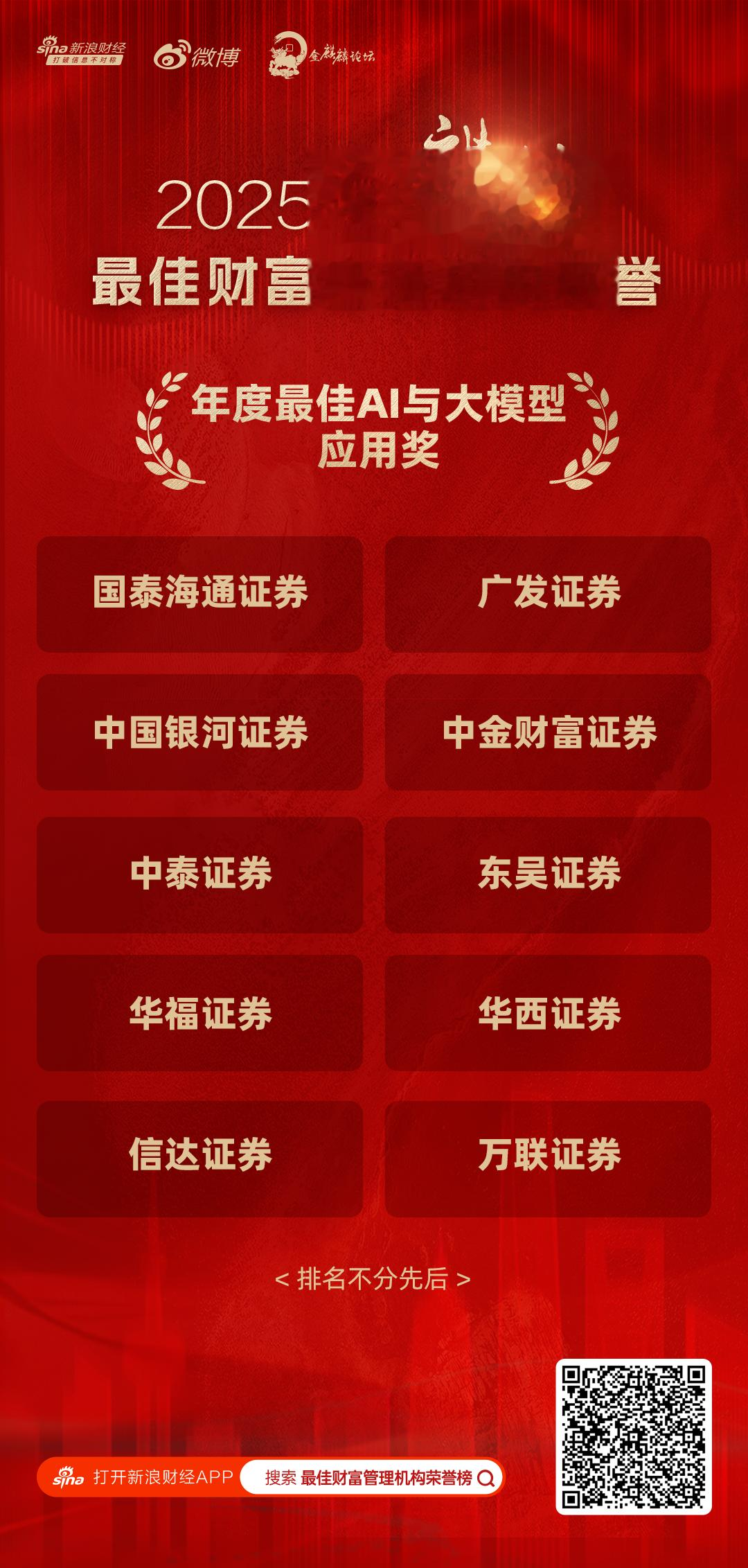 在此背景下,新浪财经举办2025金麒麟最佳财富管理机构评选。本届评选全面升级,设八大奖项,旨在从综合实力、成长动能、科技赋能与生态构建等多维度,全景扫描券商财富管理业务的新面貌。
