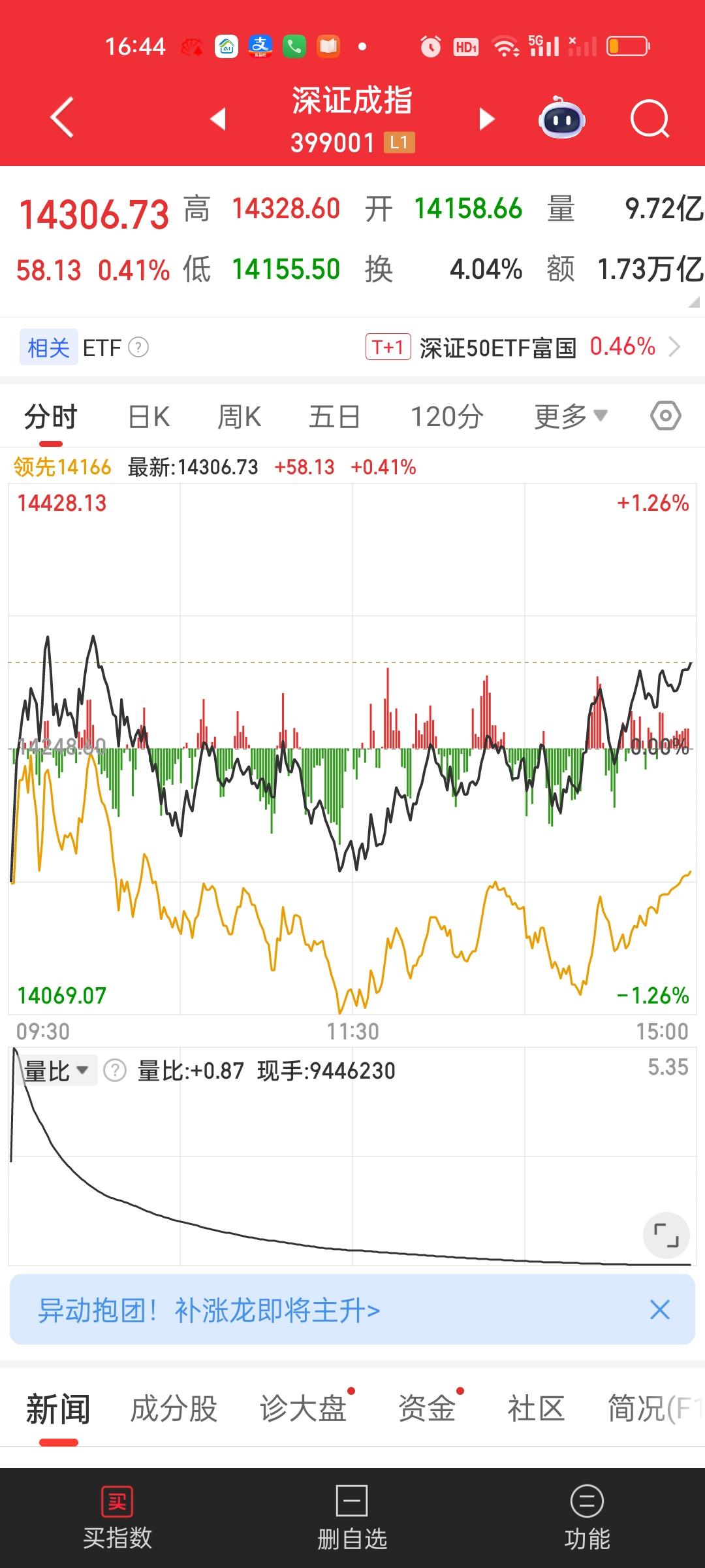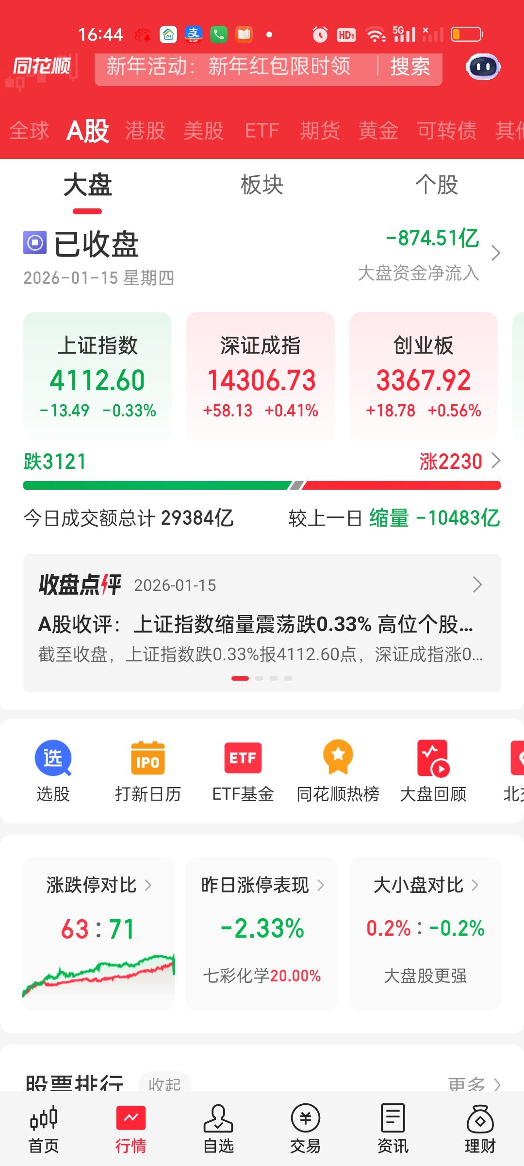 收盘了,上午收盘只缩量了3507亿,大盘资金净流出782.97亿,全天收盘缩量1