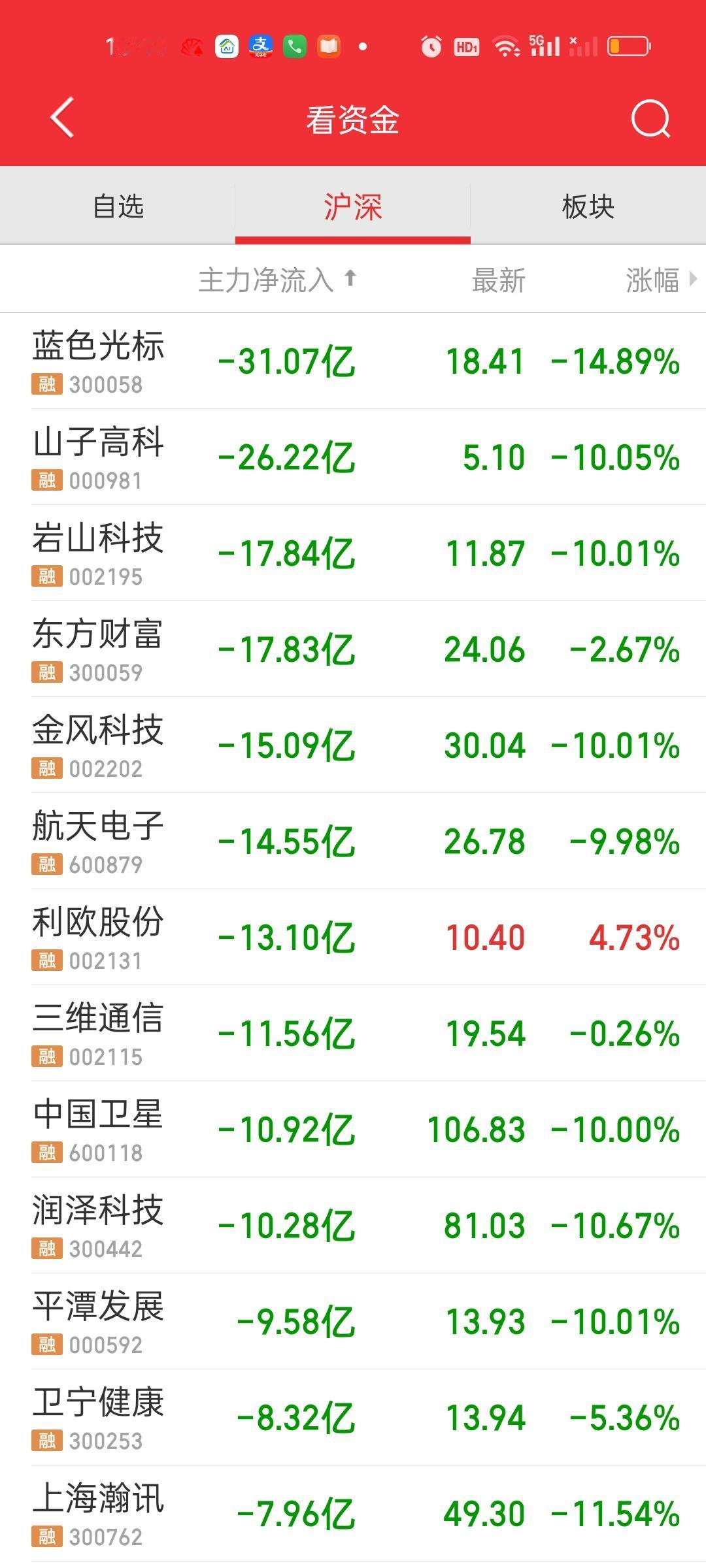 收盘了,上午收盘只缩量了3507亿,大盘资金净流出782.97亿,全天收盘缩量10483亿,大盘资金净流出874.51亿,这说明下午又缩量了10483-3507=6976亿。但资金并没有加速流出。整个下午资金只流出了874.51-782.97=91.54亿。但跌停家数有71家,这是一个很恐怖的数字。 明天需要重点关注量能会不会持续萎缩,我们说过,放量的市场是很好做的,因为你有无限容错的机会,哪怕一而再再而三的操作失误,你依然有许多机会进行修正,还很有可能操作错了都能挣钱,但缩量的市场本身资金它是有限的,不可能每个板块都会拉升。那些没有资金进去的,只会慢慢阴跌下去。 主力资金净流入超过10亿的个股,上午只有沃尔核材,下午增加了立讯精密,中际旭创,新易盛,航天机电。 主力资金净流出方面,上午有6只个股净流出超过10亿,下午收盘有10家,新增了利欧股份,三维通信,中国卫星,润泽科技。