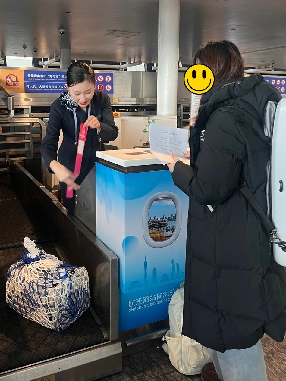 当日9时30分,刘女士携爱宠办理乘机手续。值机员仔细核查宠物品种、健康状态及相关检疫单据,确保每一项流程都合规无误,将《宠物进客舱》标识牌粘贴于宠物箱外。考虑到刘女士携带大件行李,工作人员主动协助办理托运手续,全程陪同其通过绿色通道完成安检,最终顺利引导旅客乘机。