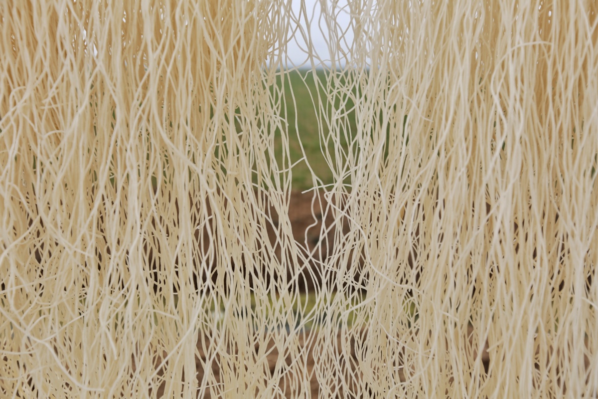 所谓“漏粉”是一种类似饸饹面的工具,靠挤压红薯淀粉面团,形成粉条进入翻滚着开水的铁锅里。然后迅速捞出历经连续两次冷却,就形成了粉条。后续待挂杆晾晒,使之水分蒸发变干,即可装袋保存。