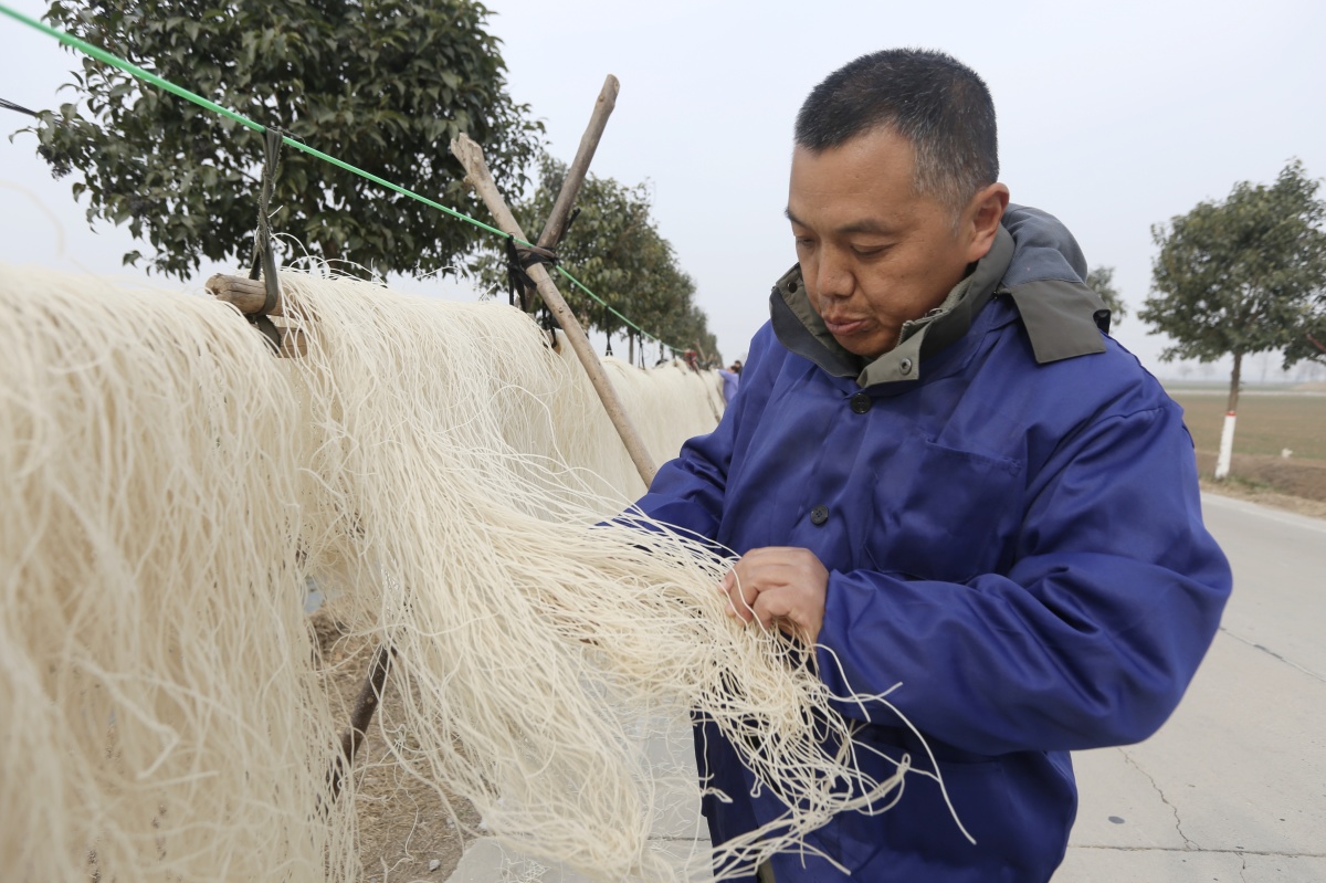 王鹏飞告诉记者,从他小时候记忆起,父辈们做粉条都是纯手工,洗红薯、磨淀粉、打芡头、下粉条……每道工序都是人工完成的。虽然近些年随着红薯粉条的量产,个别劳动繁重的工序使用了机器代替,但绝大部分步骤仍由人工完成。