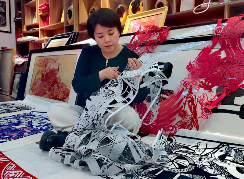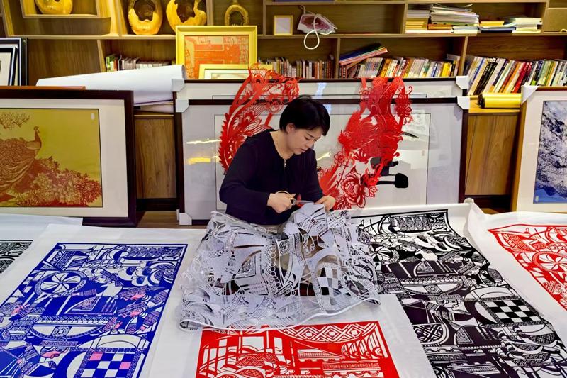 曹梅梅专注裁剪作品。习水县融媒体中心供图