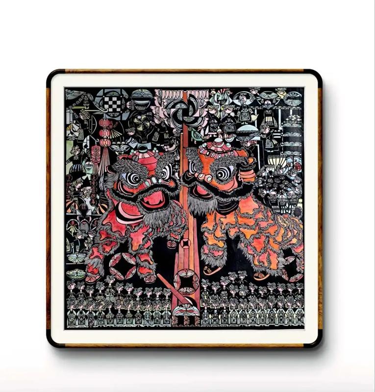作品在艺术表达上颇具巧思,以醒狮舞动的“现在进行时”动态场景为视觉焦点,搭配童谣场景的“时光回溯”背景,巧妙融合了春节当下的欢腾氛围与悠久的年俗传统,尽显中华民族节庆文化的代代相传与生生不息的生命热情。值得一提的是,作品深度融入习水本地红苗文化元素,以身着苗族盛装的人物形象为载体,用象征吉祥与生命起源的苗族蝴蝶纹样贯穿全图,既串联起各个独立场景、增强了画面的流动韵律,又赋予作品独特的民族特色,深化了文化传承的内涵。色彩运用上,作品突破传统剪纸“一片红”的定式,采用对比鲜明的中国红、玄黑与绿色,通过强烈的色彩冲击,精准烘托出春节红火热闹与庄重典雅并存的喜庆氛围。