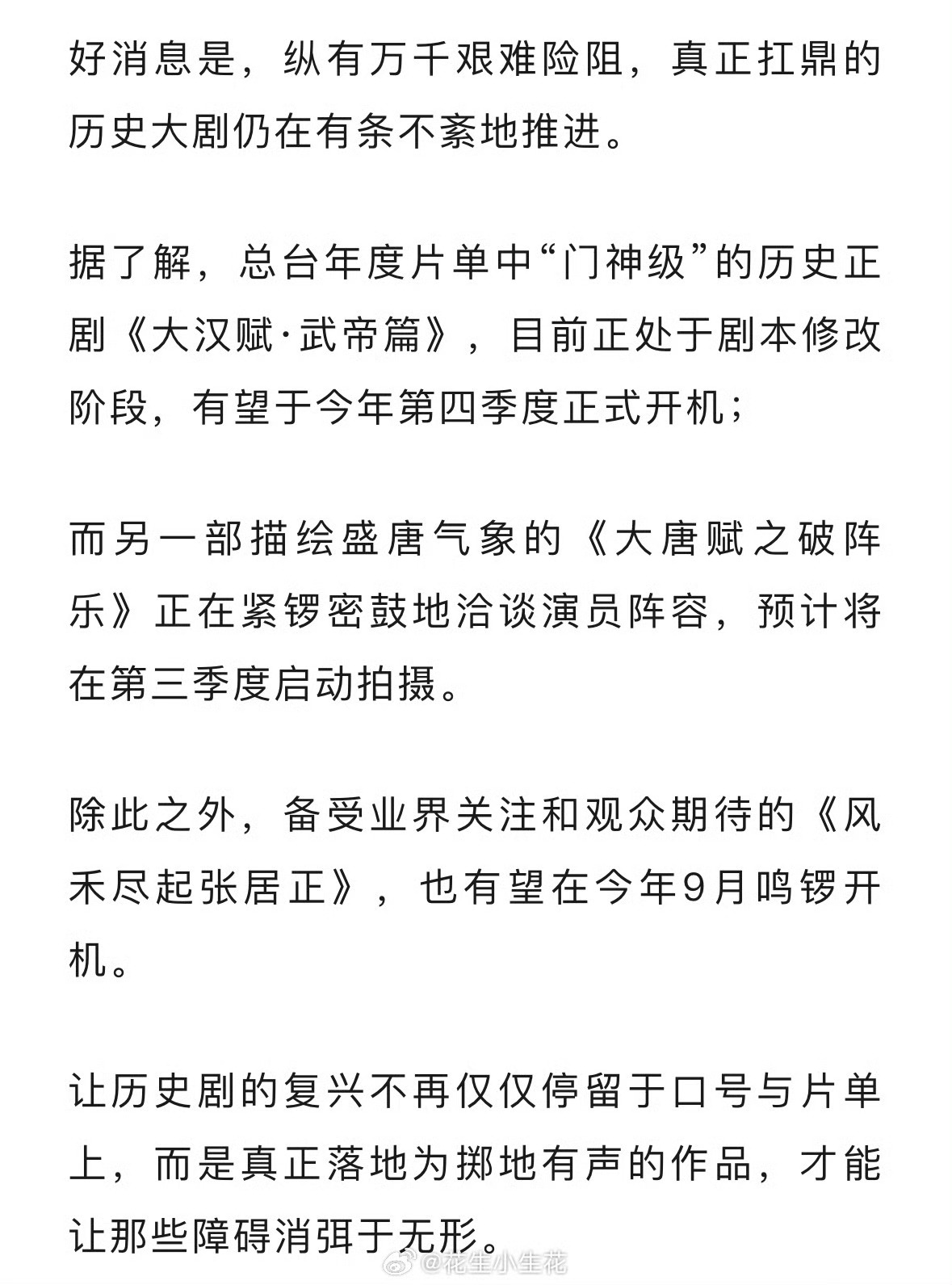 一下子大汉赋大唐赋张居正今年都要开了张居正可能性最大,另外两部不好说
