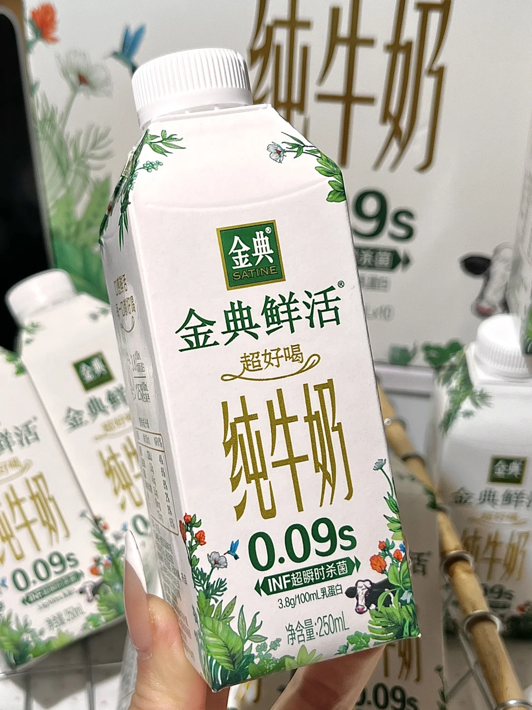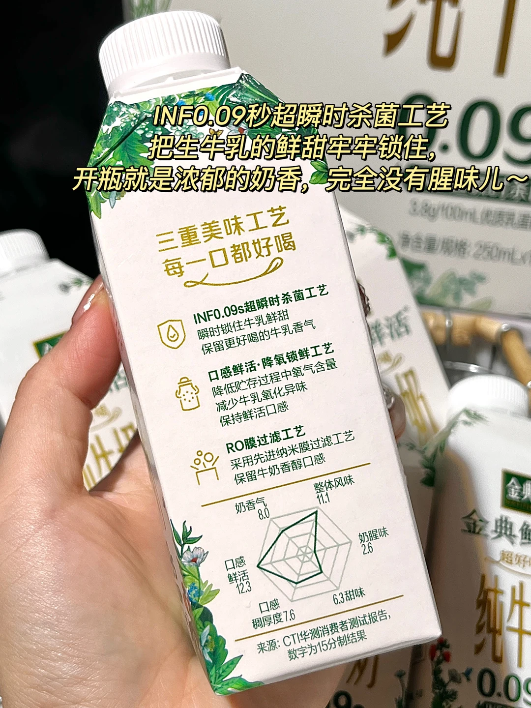 它家的锁鲜技术也太会了吧!INF0.09秒超瞬时杀菌,把生牛乳的鲜甜牢牢锁住,开瓶就是浓郁的奶香,完全没有腥味儿~