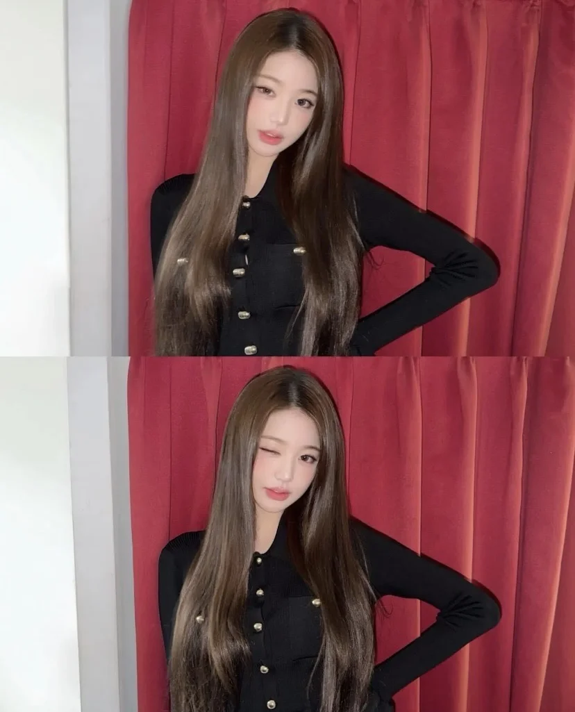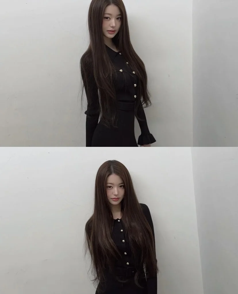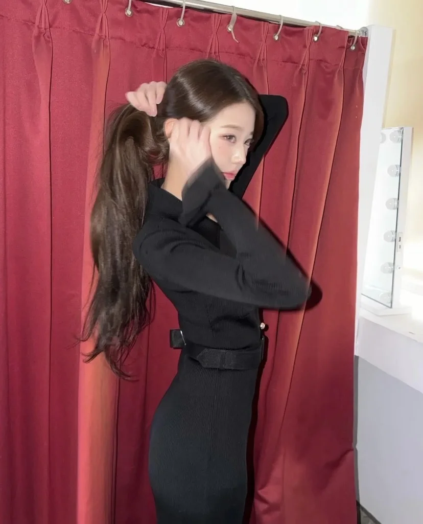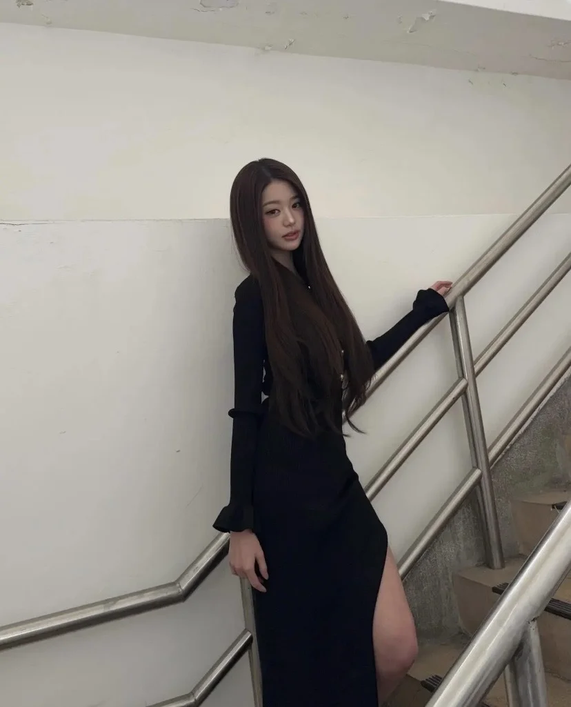 这可是平底鞋啊闺蜜们 黑长直发型+红唇妆容,和“轻熟御姐风”的裙子完美契合,既保留了她的少女感,又多了几分气质感