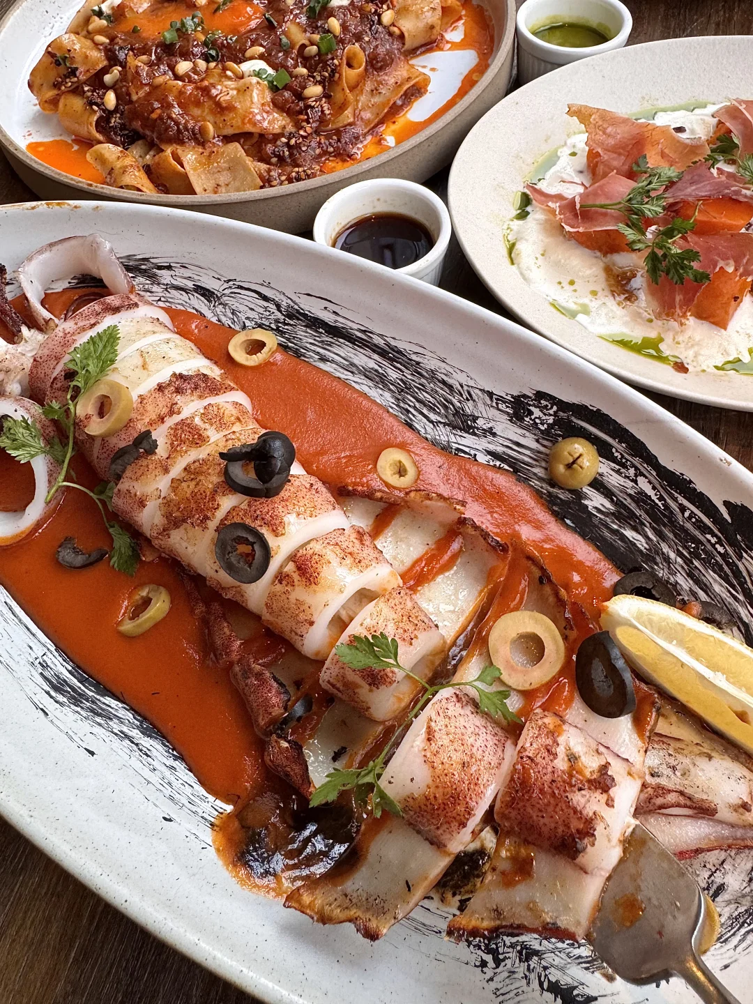 亚奥之神!!我唯一吃过5次以上的店! 叫:有山不远)一家很有sense的木质调小店 自带庭院山野氛围 不管是约会还是分手都很合适! 熟成鲷鱼刺身!好好吃😭油脂丰厚带着淡淡的焦香,入口弹糯弹糯的,鱼肉鲜嫩得一口惊艳!油泼辣子意面、炭烤笔筒大鱿鱼、柚子莎莎虾多士……值得带嫡长闺来反复n刷!!