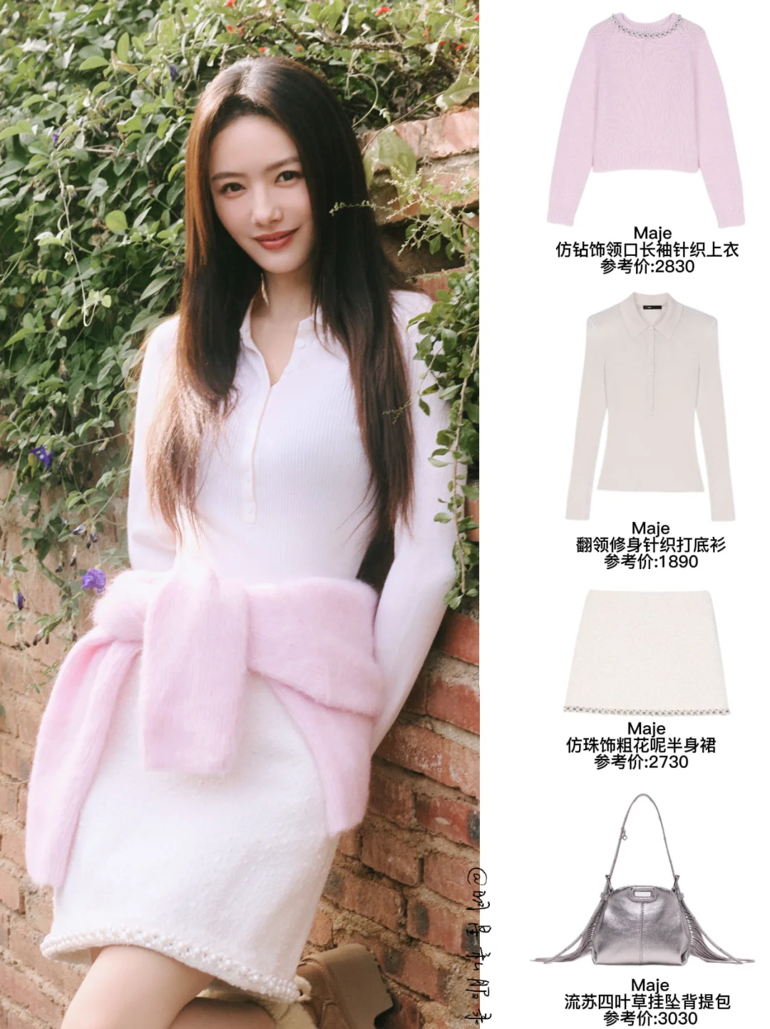 蔡文静更新私服随拍,一身粉白配直接唤醒我的新年穿搭灵感✨ Maje翻领针织衫搭配粗花呢半身裙与流苏手提包,法式effortless chic时髦轻松拿捏,腰间随意系着的粉色针织衫打造出层次感,这种慵懒与精致并存的平衡正是法式风格的精髓呀~日常私服真的是实穿挂,风格百变又松弛,不管是长风衣的高级感还是费尔岛毛衣的慵懒感,总能穿出自己的味道,穿搭尖子生必须提名! 图片cr:蔡文静