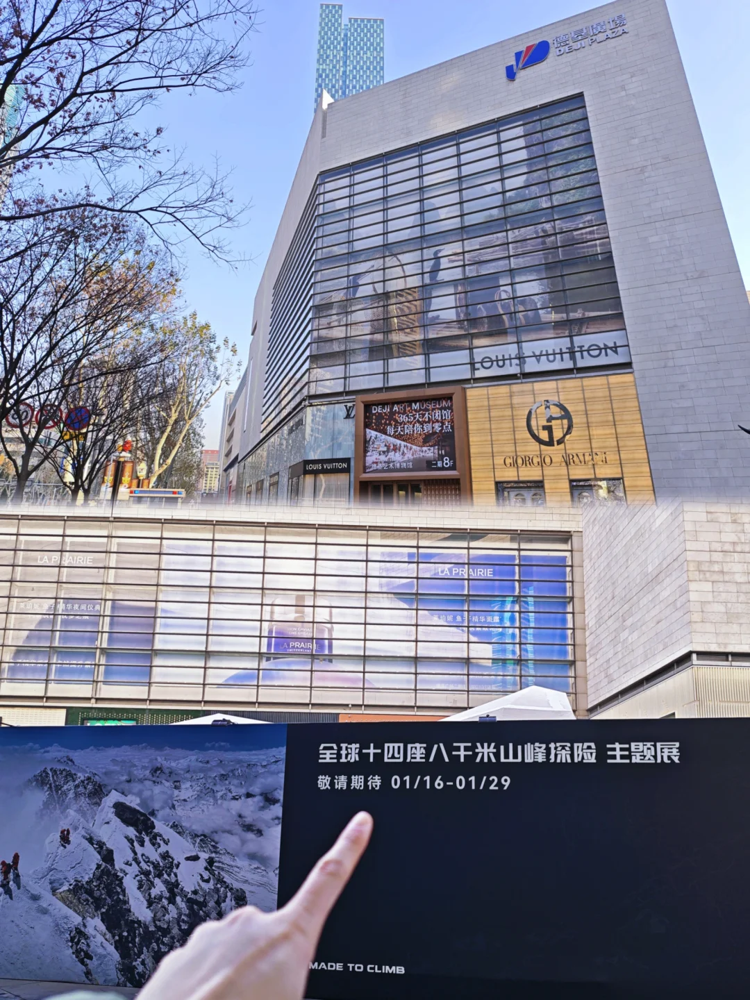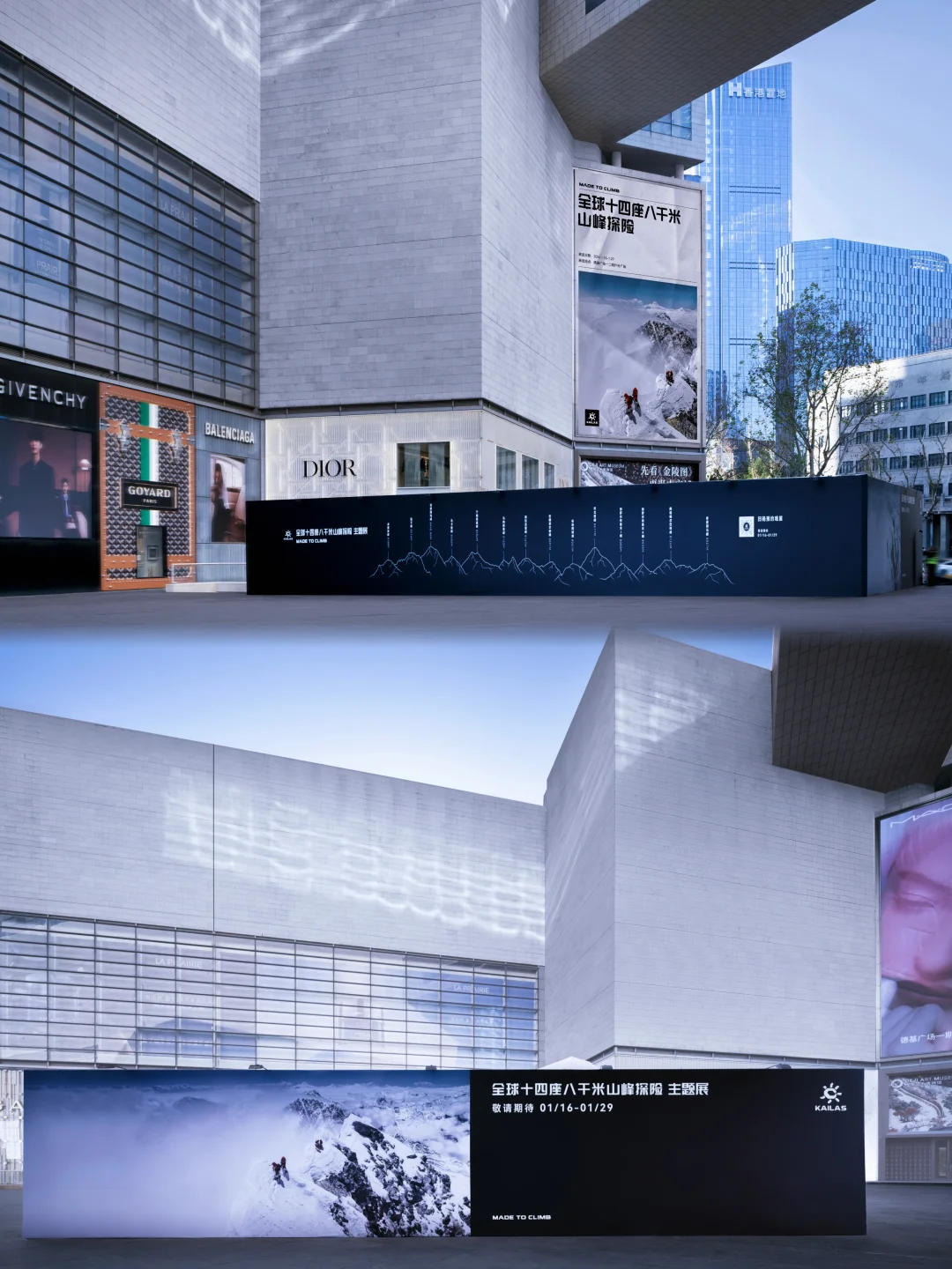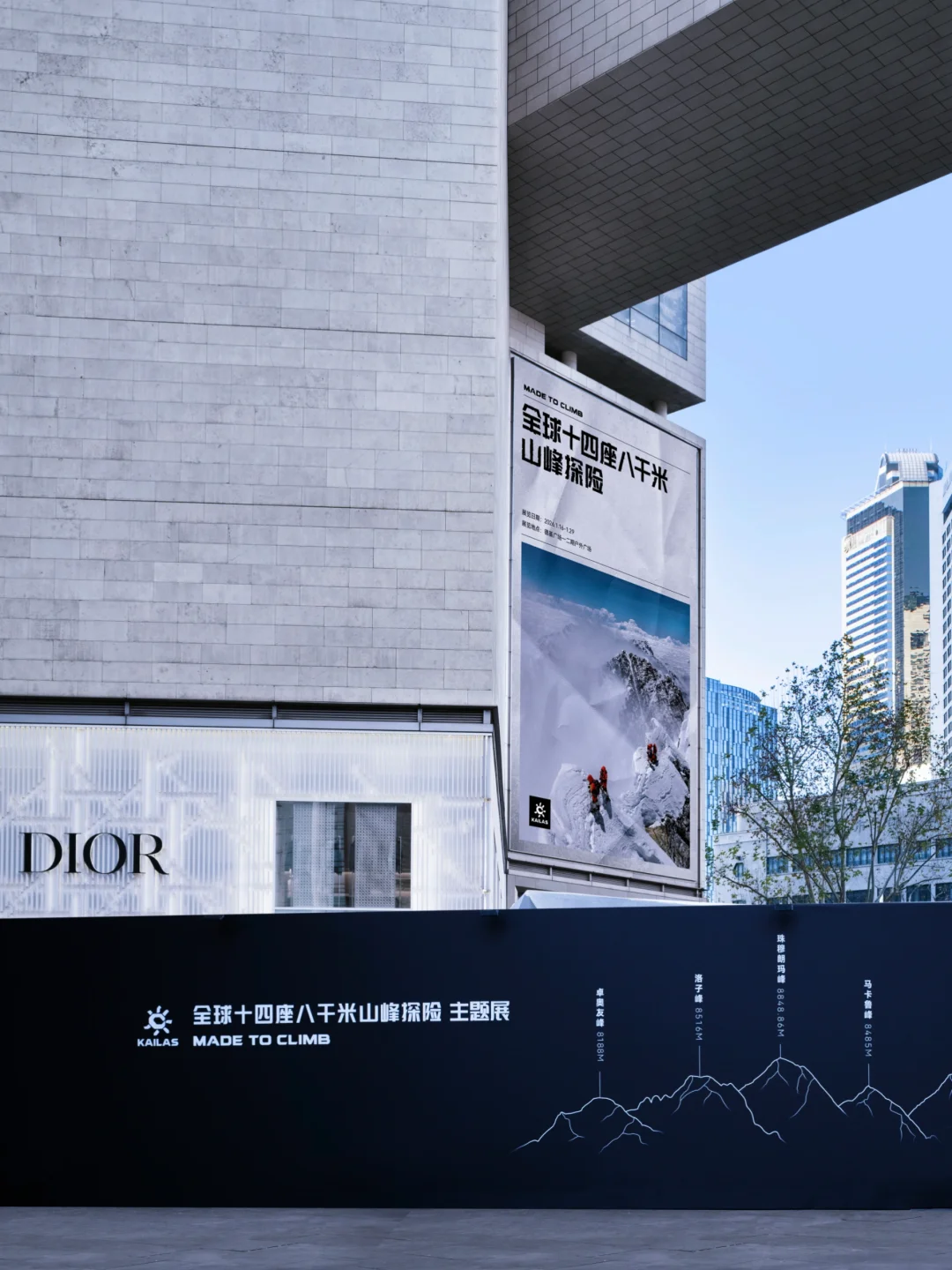 📖虽然展览还没有开放,快闪围挡上面带有14座8000米雪山的介绍和让人身临其境的攀登画面,还能窥见白色尖尖,不禁好奇开展后的景象了!