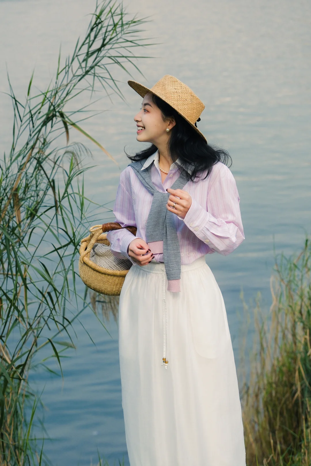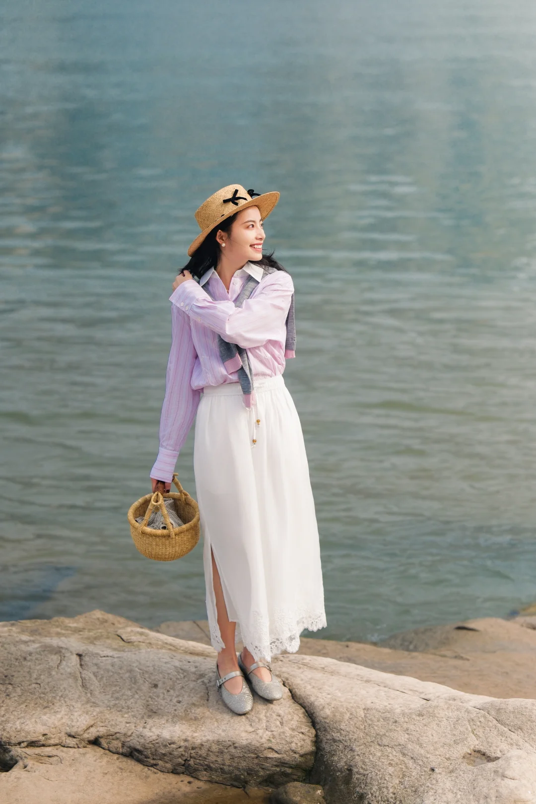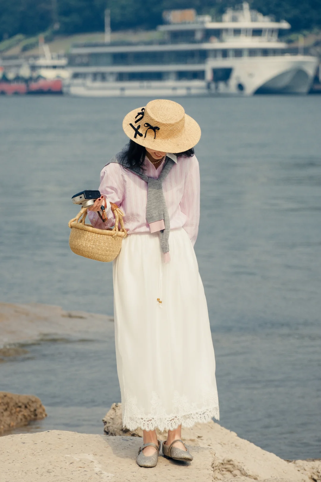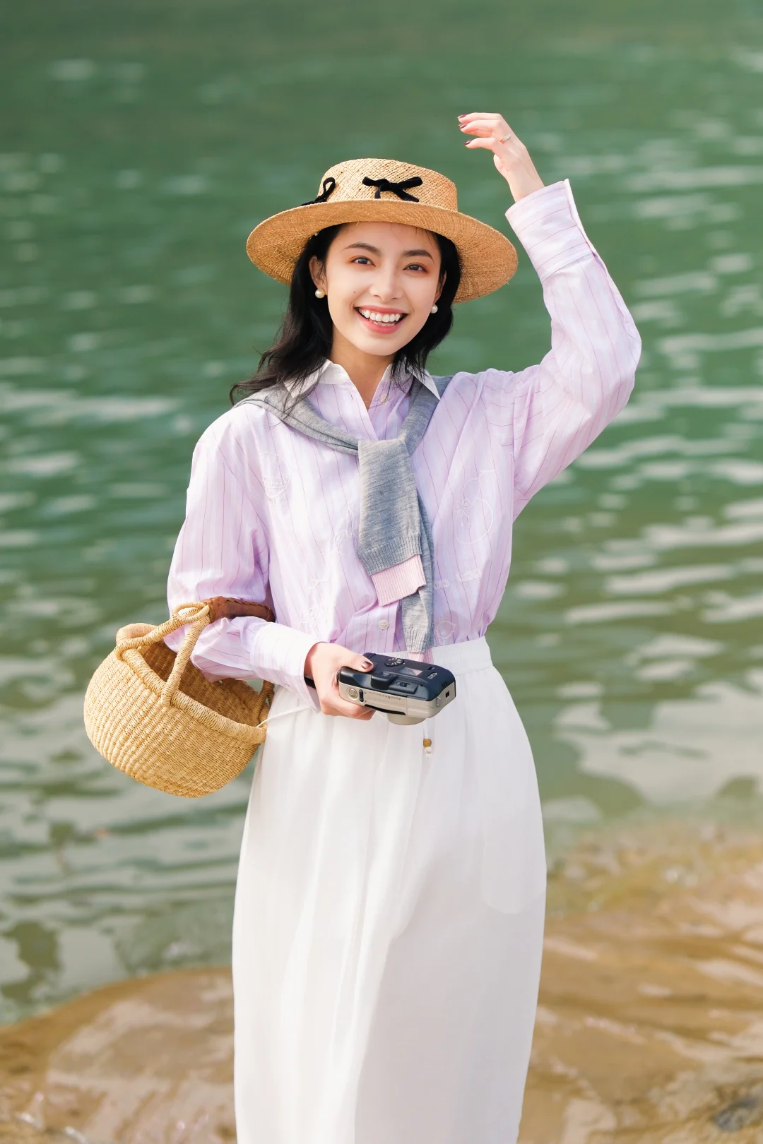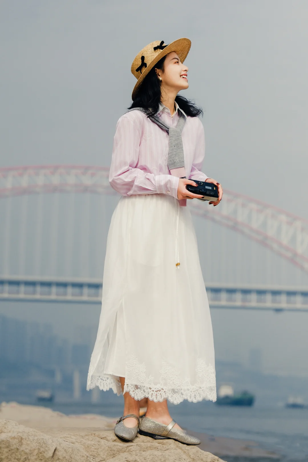 2️⃣可以找一处江边的石滩,注意看一下石滩的线条,人坐在石滩上用江水做背景也很好看