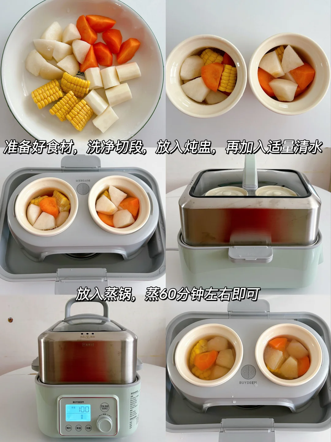 👉秋月梨食材:秋月梨🍐1个,甜玉米🌽半根,铁棍山药半根,胡萝卜🥕半根