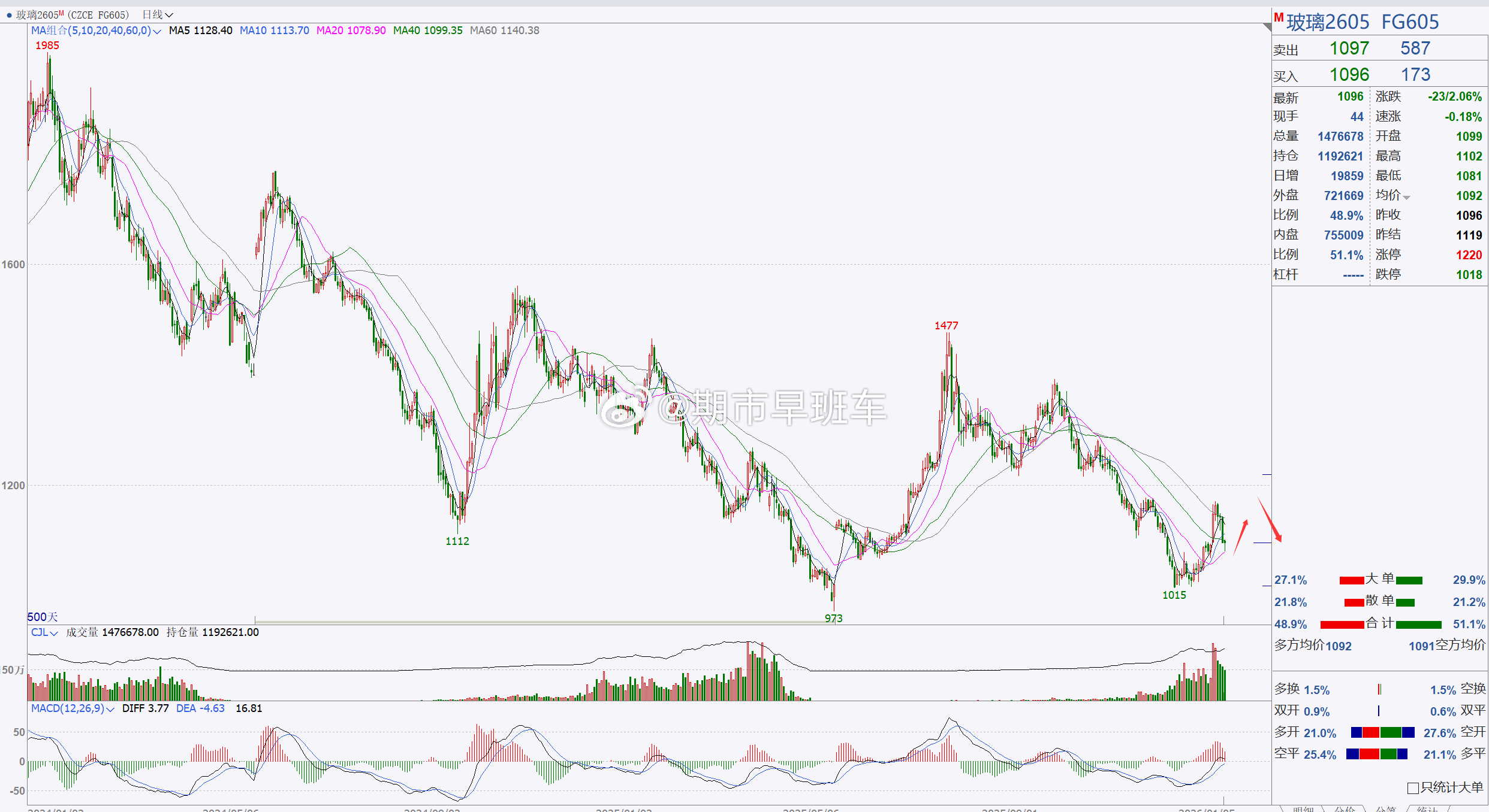 1、【纯碱2605】纯碱重点关注1200一带!纯碱目前伴随着短期回踩修正,后市重点关注1200整数一带,若此位置未能跌破,建议短线跟进,可继续看反弹调整,稳健者建议先观望;例如多关注1210—1200附近;上方先关注1280附近,突破再关注1310附近;空关注1280、1310这两个位置再择机考虑介入;(建议仅供参考,具体操作以开盘点位实时跟进,据此操作风险自担)2、【玻璃2605】玻璃关注1050整数一带,建议短线跟进!玻璃目前伴随着回踩调整,后市我们重点关注1050整数一带,若此位置未能跌破延续,建议短线跟进;稳健者建议先观望;例如多关注1070—1060附近,上方先关注1150附近,突破再关注1180附近;空关注1150、1180这两个位置再择机考虑介入;(建议仅供参考,具体操作以开盘点位实时跟进,据此操作风险自担)纯碱 玻璃