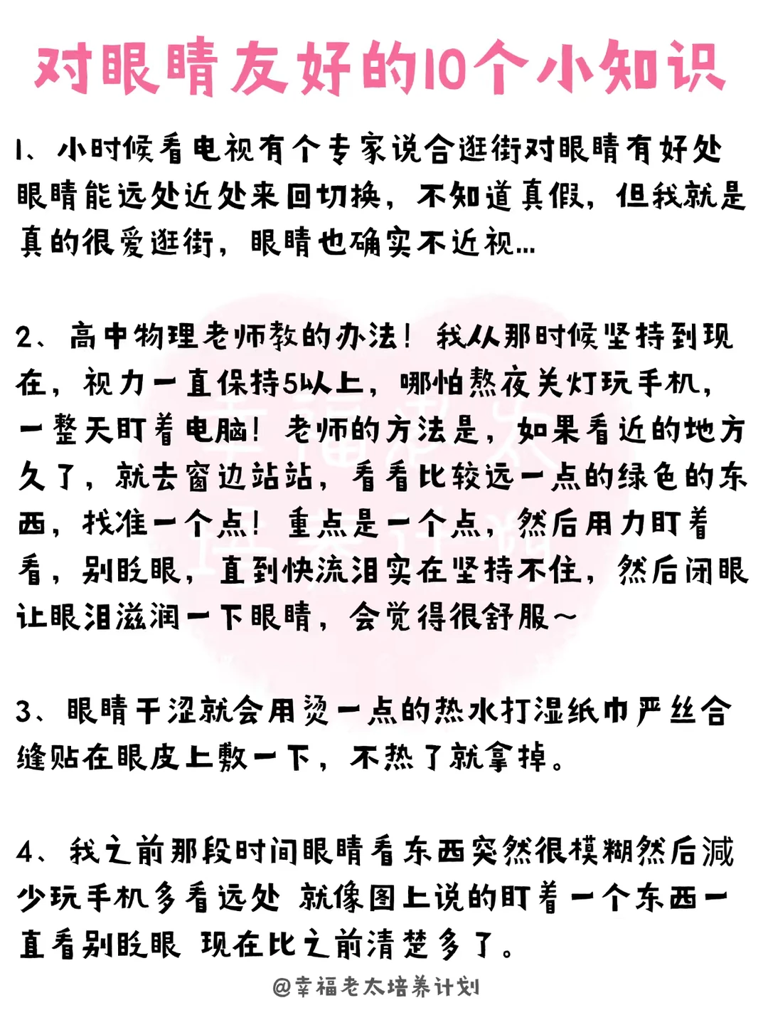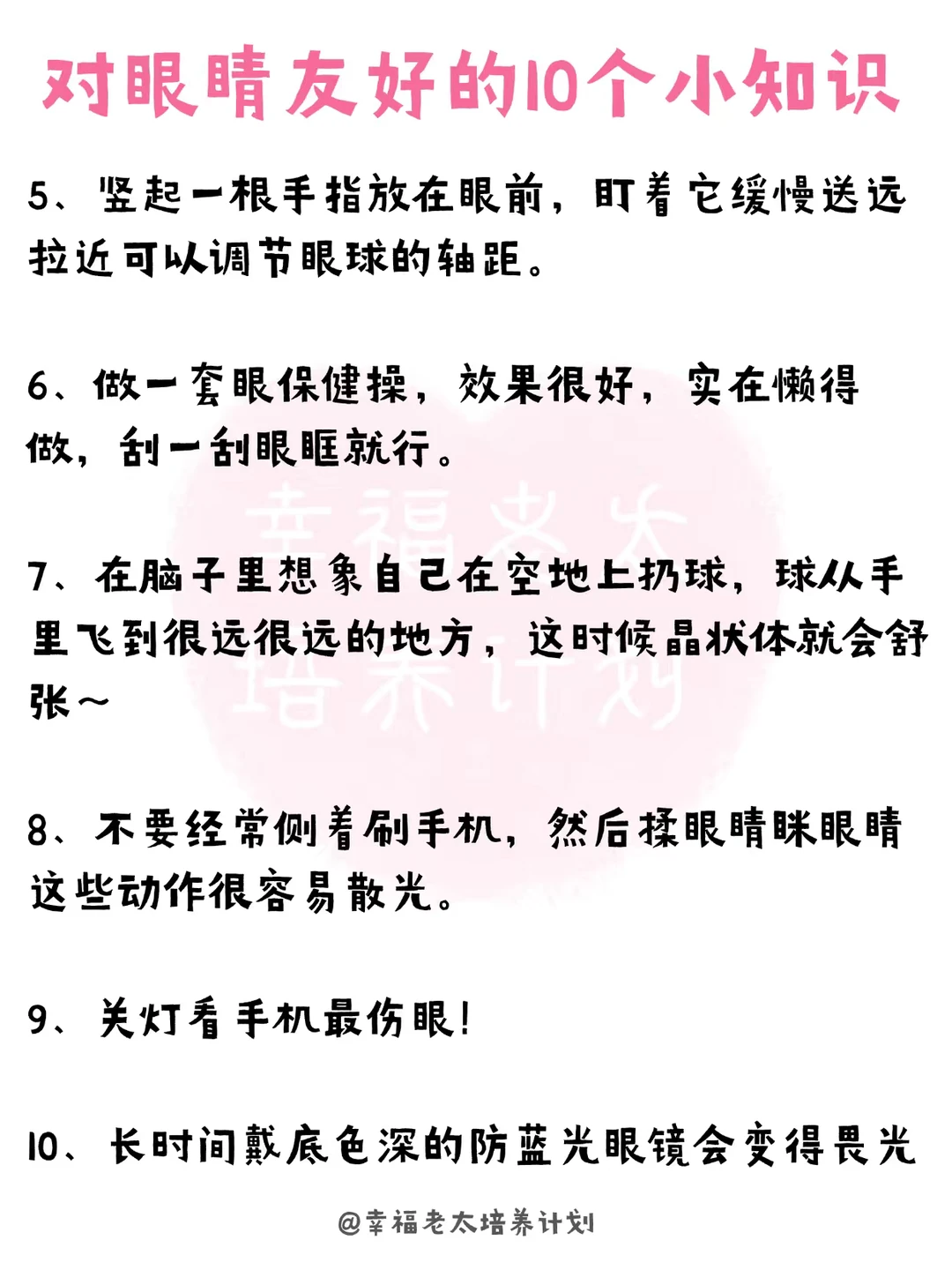 女性健康 我的健康生活 保护眼睛视力 对眼睛有好处 健康知识科普 冷知识 护眼 健康养生 女生必看 幸福老太培养计划