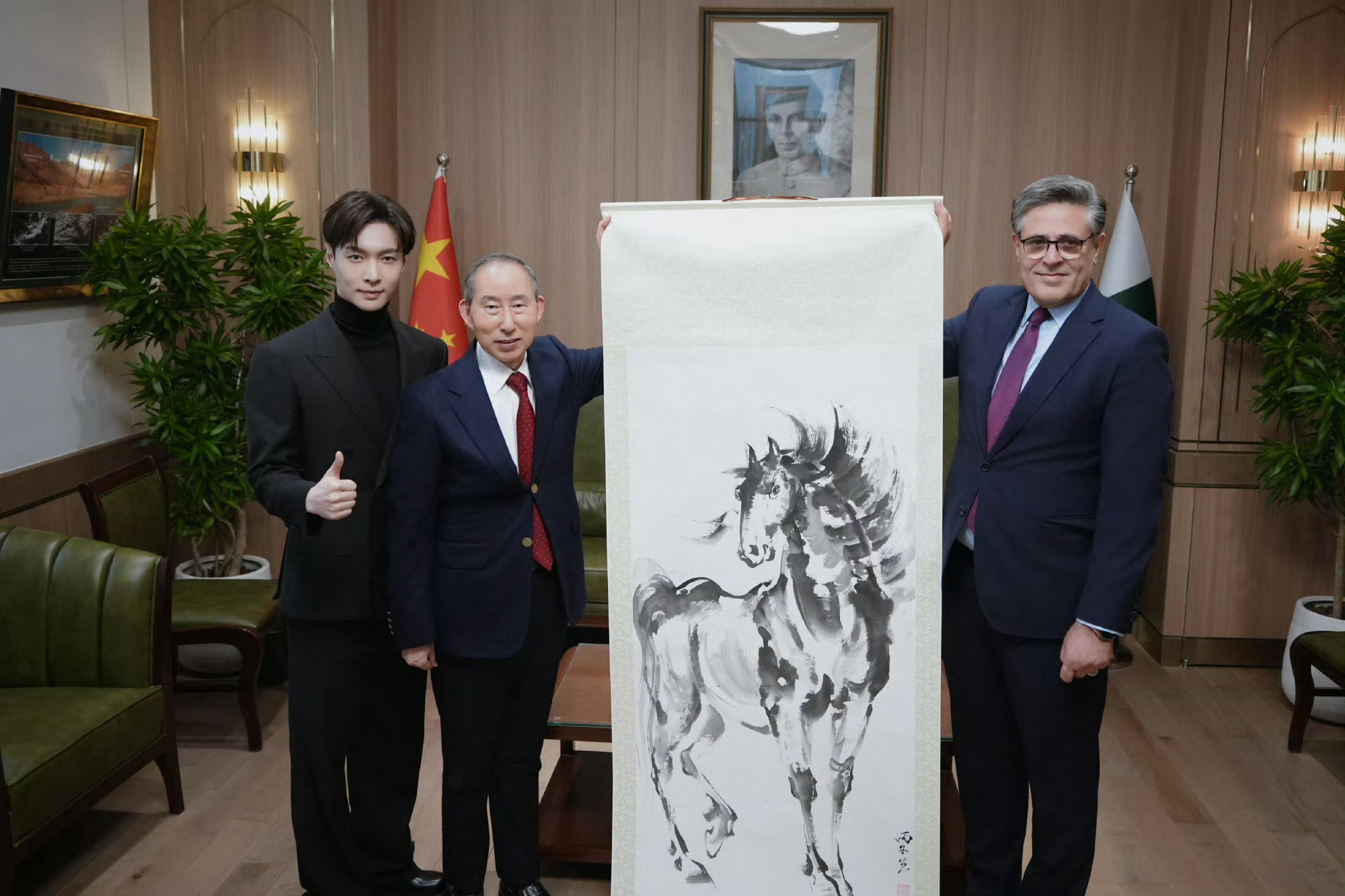 妈呀!是哪位青年艺人出席外交场合、参与文化交流活动。是根正苗红、坚持文化创新、参与国与国间文化交流的优质青年文艺工作者张艺兴啊。张艺兴中巴建交七十五载合照今天出席中巴建交75周年活动,与巴基斯坦驻华大使卡里尔·哈什米及中国国际文化传播中心执行主席龙宇翔共同合影,及互换礼物。巴方赠予的官方文化画册是重要交流载体,张艺兴回赠的《开天》画胶是中国青年文化的创新表达。果然步步耕耘步步收获,这几年张艺兴始终承载着青年艺人该有的使命,推动中国传统文化以更崭新的方式被当代青年人看见。从坚持M—POP音乐创新,到鸟巢演唱会以及《大花轿》舞台破圈,张艺兴不仅走在流行最前沿,更是秉持着青年文艺工作者才有的操守,让文化成为桥梁,让中国传统文化被世界看见!他一直在做,他值得被看到、值得这样的场合认可。跨年电影愿