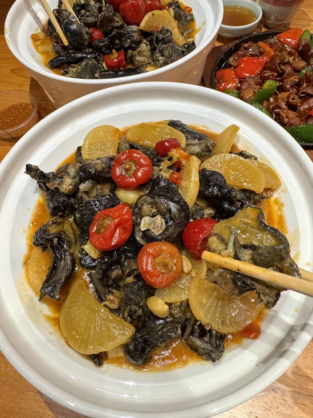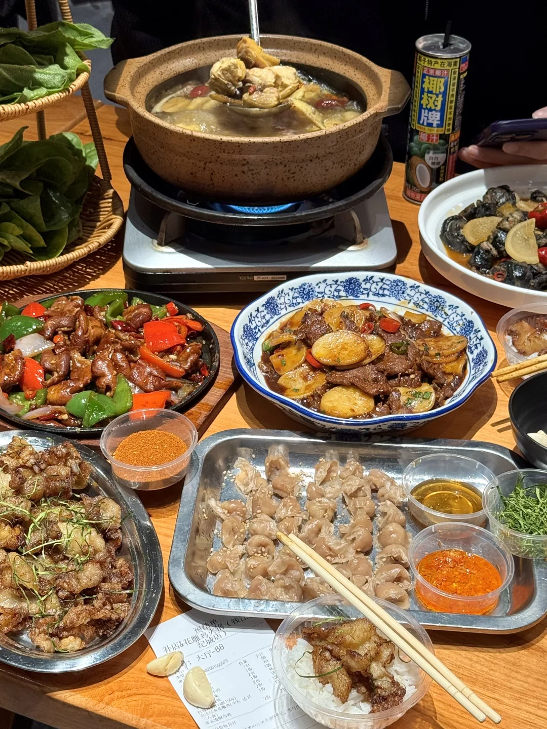 杭州我私心舍不得太🔥的店…难得能和朋友连吃三天都不腻! 牛肉炒年糕!牛肉裹满汤汁勾芡巨嫩巨入味!年糕糯叽叽的很饱肚~泡椒鸡、铁板肥肠、干蒸肉燕…都是现炒很有锅气!鸡煲也是涮啥啥鲜!真的吊打那些网红店!!叫:补店)