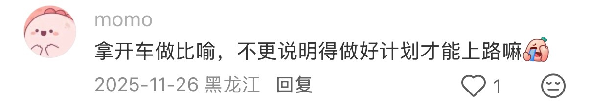 人生真的没什么好规划的我其实不认同他的这个观点。可能我是一个按部就班,会规划很清晰的人吧。这也仅我个人来说!我会把自己规划的越详细,目标感越强我会越有动力,我知道接下来路该怎么走,该怎么达到终点。
