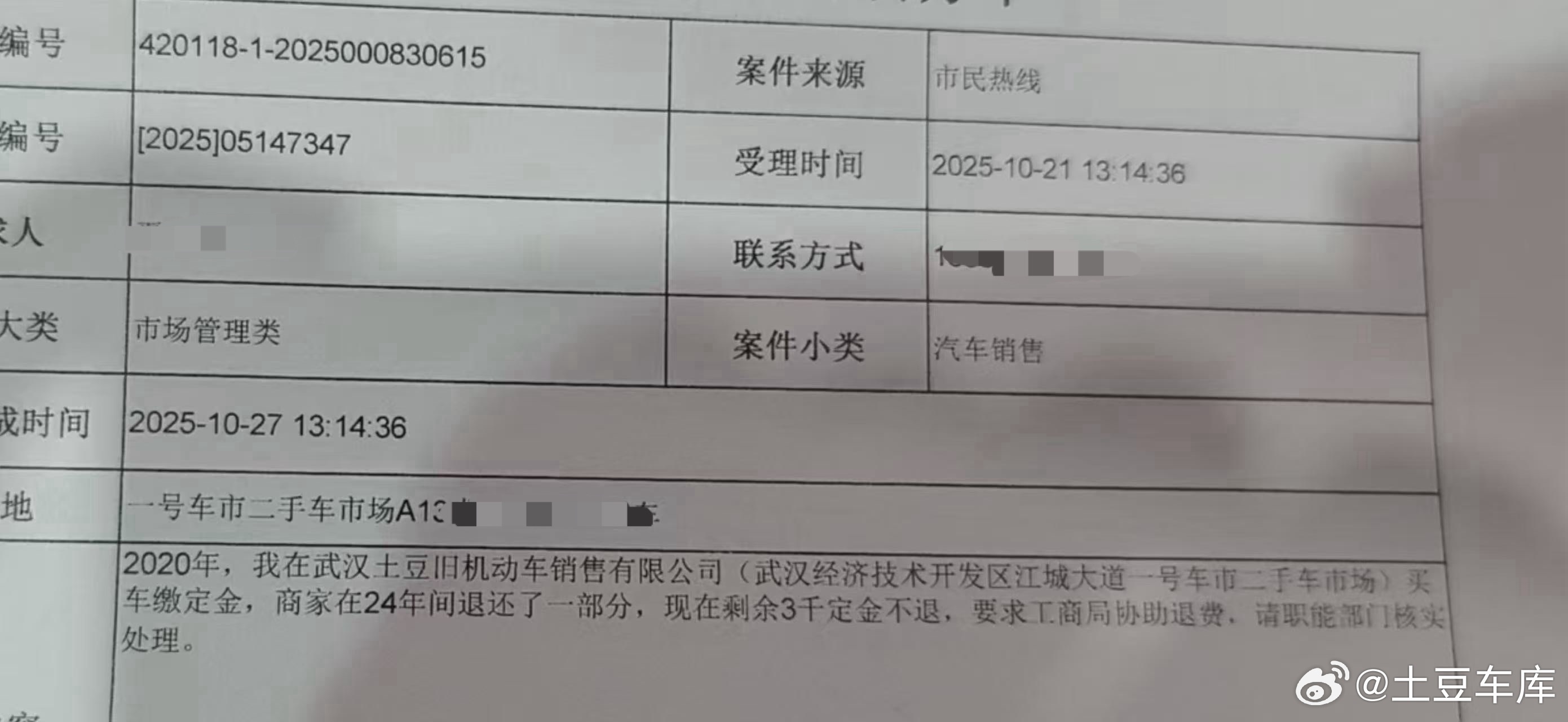 这六年是怎么过来的???早知道 我就一毛钱不退2020年 过年前这位武汉夏先生 来店里看车 相中奔驰GLA给了定金 约定年后过户提车结果年后他说没钱 卖惨等我给退还了大部分定金(不是2024才退)这台奔驰GLA 当时价值十好几万给他从年前留到年后 也整备好了后来行情掉了 我还亏了一些钱我当时原话是这3000块钱 后期买车抵扣车款包括他介绍身边朋友卖车给我只要成交 就抵扣这3000块钱中途也有给我发过几台车都没搞定 要么价格不对 要么太老了 我没啥兴趣最后一次是他自己有台Modely要卖问了几家行情 最最最顶的价格我当时在高速上开车 他一直给我打电话 让我去收我说收不起 …价格贵了后续他多次给我发消息我实在受不了 给他拉黑了前段时间 又投诉到我们市场在此之前 已经投诉过很多次基本上每年 都会投诉我今天我收到经开法院电话好家伙 真的挺有意思
