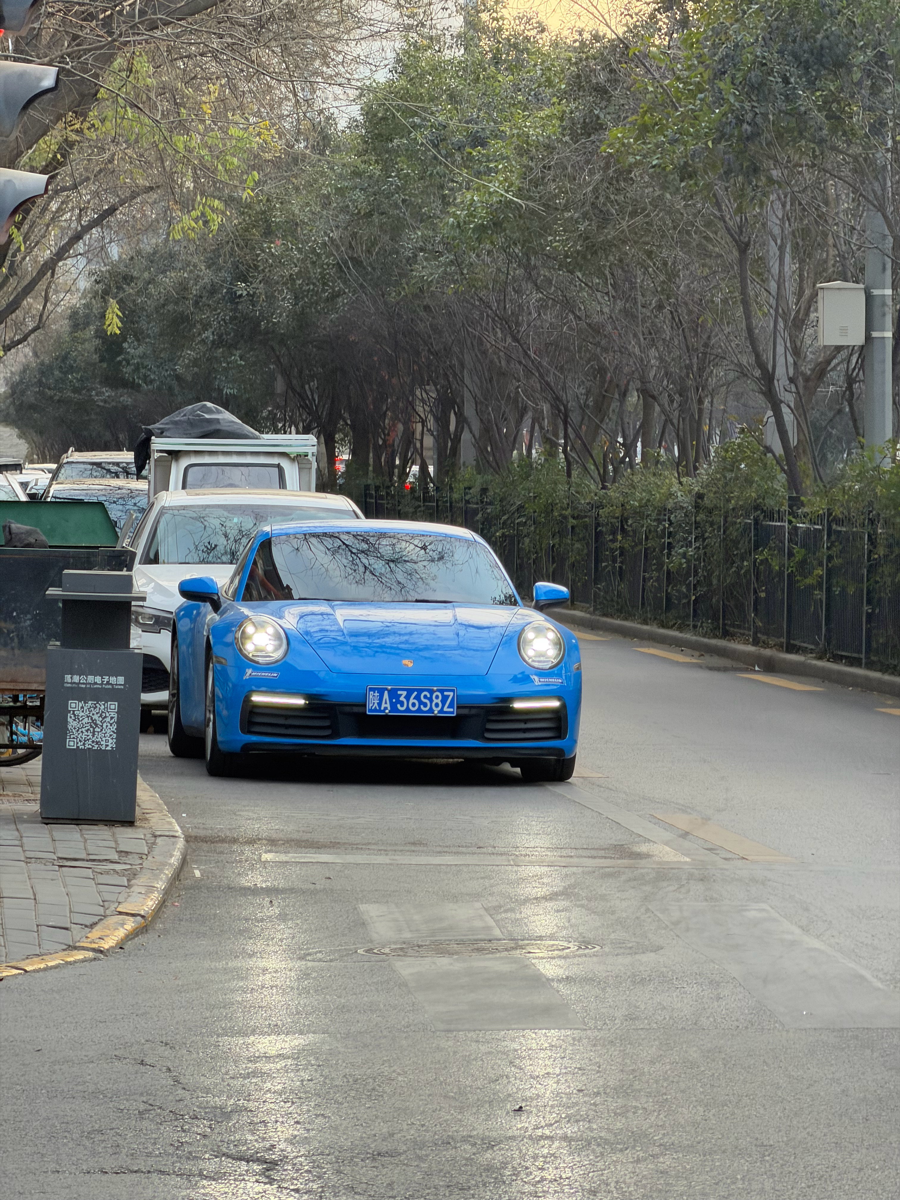 看到一辆很熟悉颜色的保时捷……该说不说确实还挺好看的好像有点像卡布里蓝,大马路上