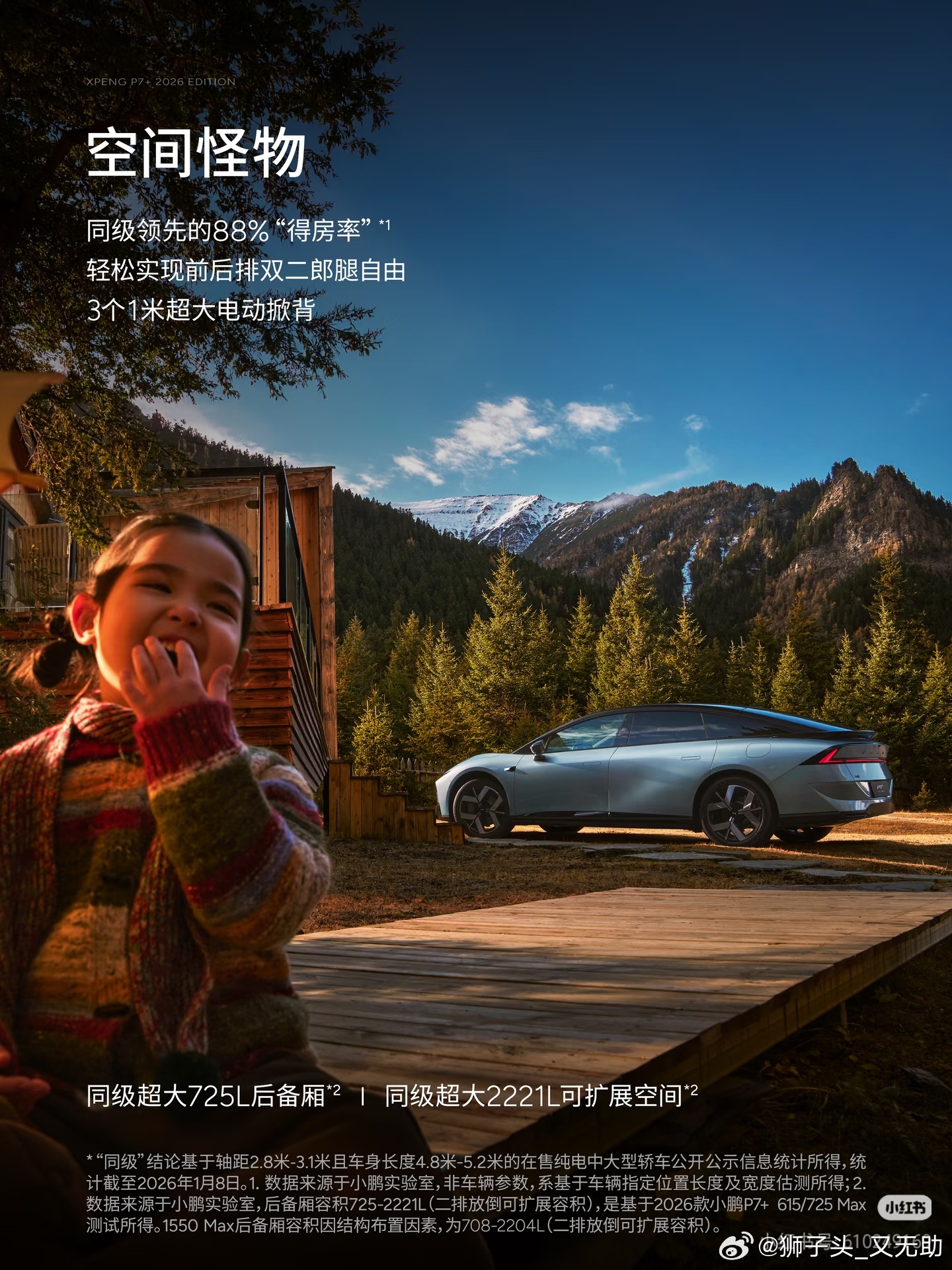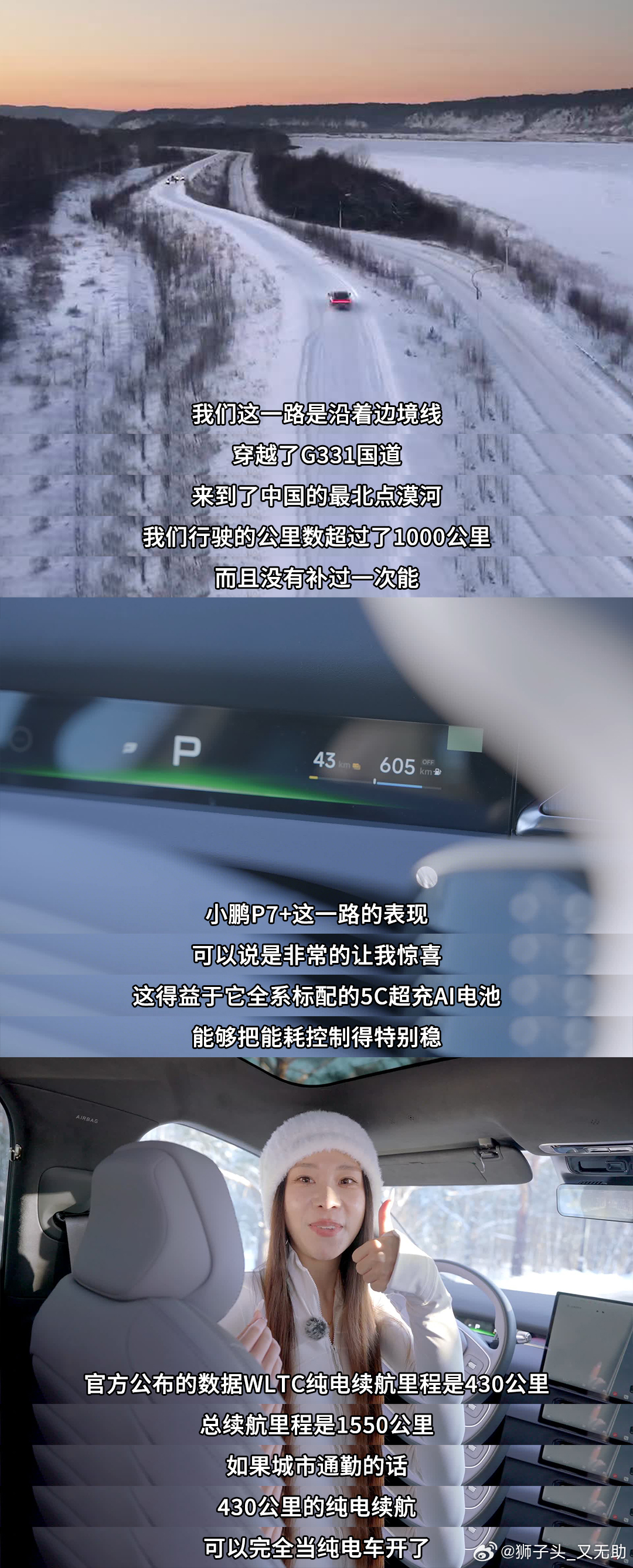 关于小鹏P7+的双黄蛋:【老外震惊】!!小鹏P7+装33个行李箱震惊欧洲媒体比利时发布会现场,新款小鹏P7+轻松装下了33个20寸行李箱,后备厢基础容积达同级超大的725L,放倒后排可扩展至2221L,宽敞度堪比SUV。我觉得老外还是见的太少了,还有百公里12.5度/10.9度的超低能耗,肯定也会震惊。综合续航1550km,肯定也会震惊。辅助驾驶能力,肯定也会震惊【驶进零下40度的冬季漠河】!!小鹏P7+超级增程征服中国最北极寒在中国最北的极寒之地,新款小鹏P7+驶入零下40℃的漠河冰雪路况。长时间低温行驶、低温频繁启停、复杂冰雪道路,超级增程系统不惧冰雪,依然能够稳定运行、强劲输出,用一场漠河实测证明:极寒不是例外,而是可以被从容应对的日常场景。新款小鹏P7+是空间怪物小鹏汽车