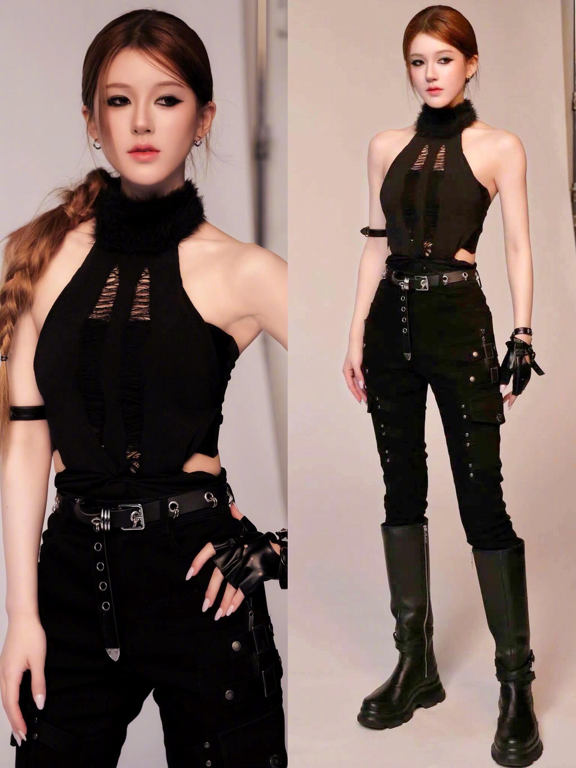 赵露思暗黑色系女特工赵露思最新造型,暗黑特工太A了!这次直接颠覆以往甜妹风,用all black的特工装搭配烟熏,冷冽又飒爽,黑色挂脖裙配朋克紧身牛仔裤与长靴,把暗黑酷感拉满,实在是太帅了