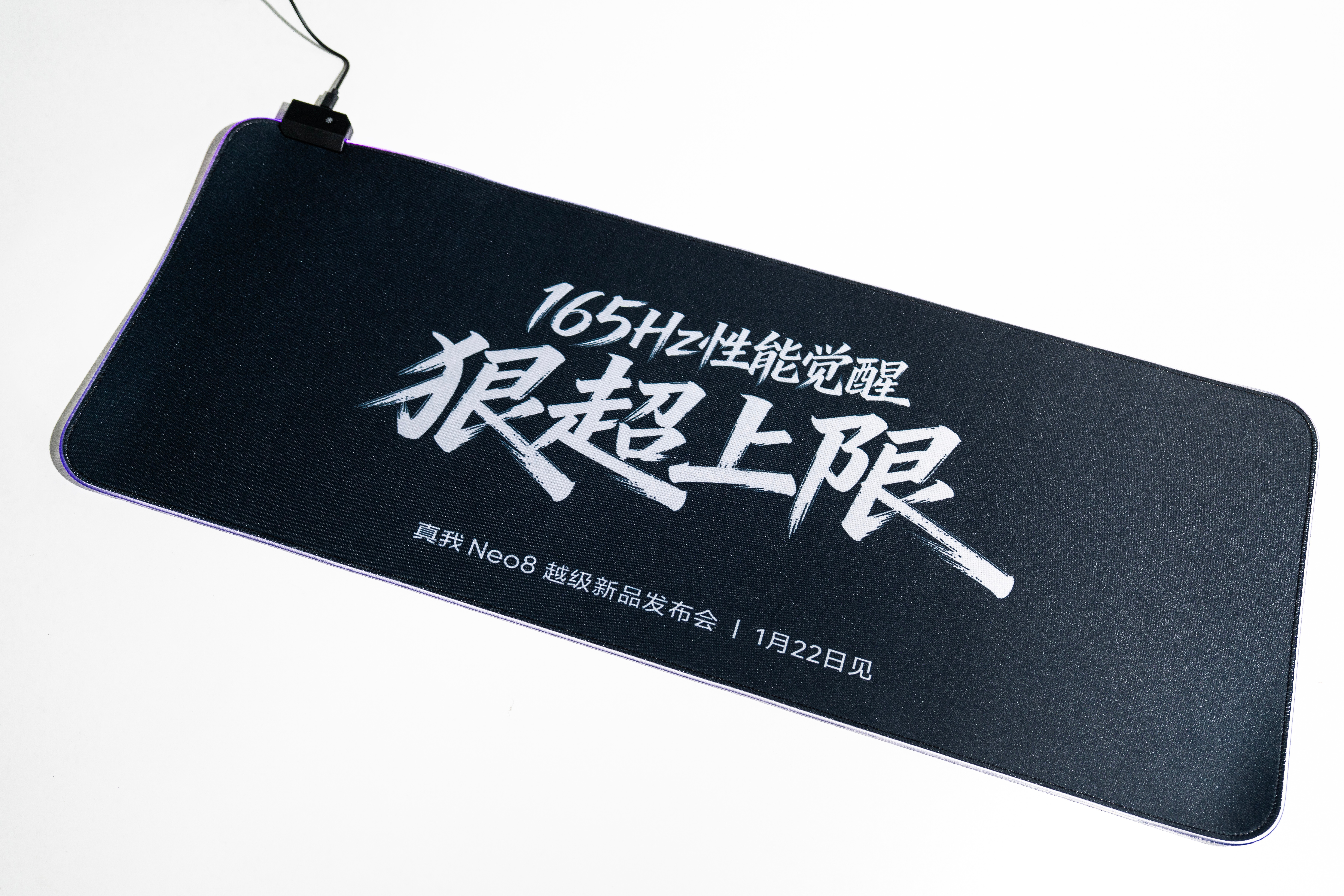 真我Neo8的发布会邀请函是一个会发光的鼠标垫,这应该是和手机上的觉醒光环呼应的