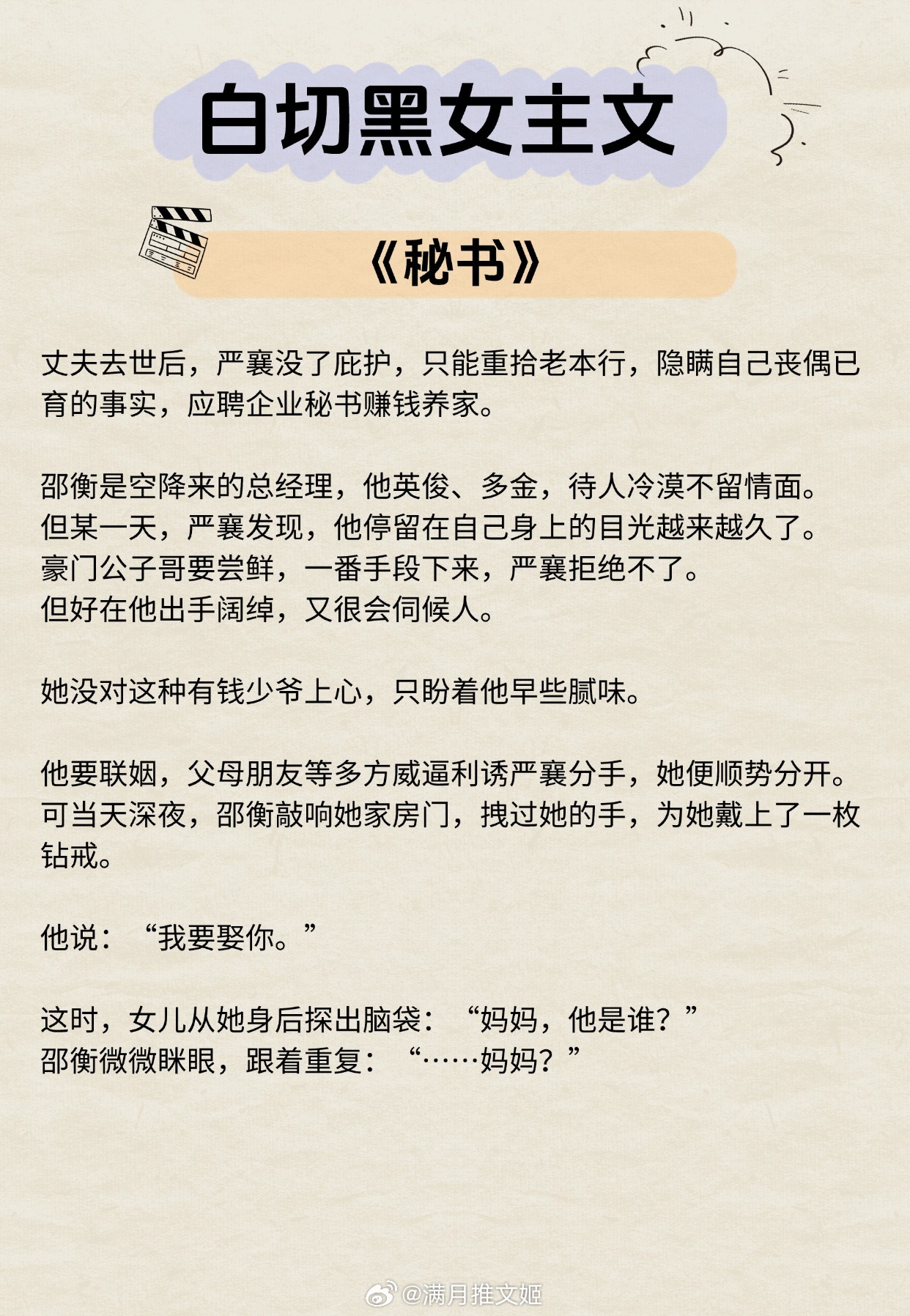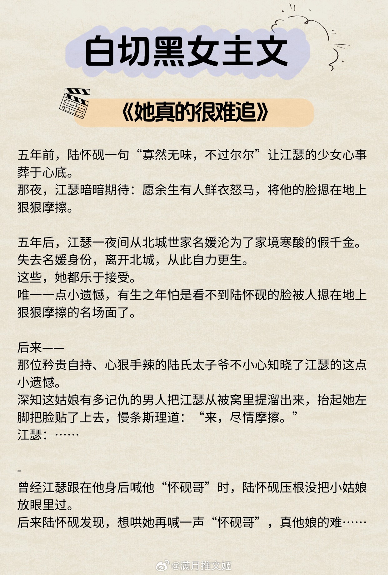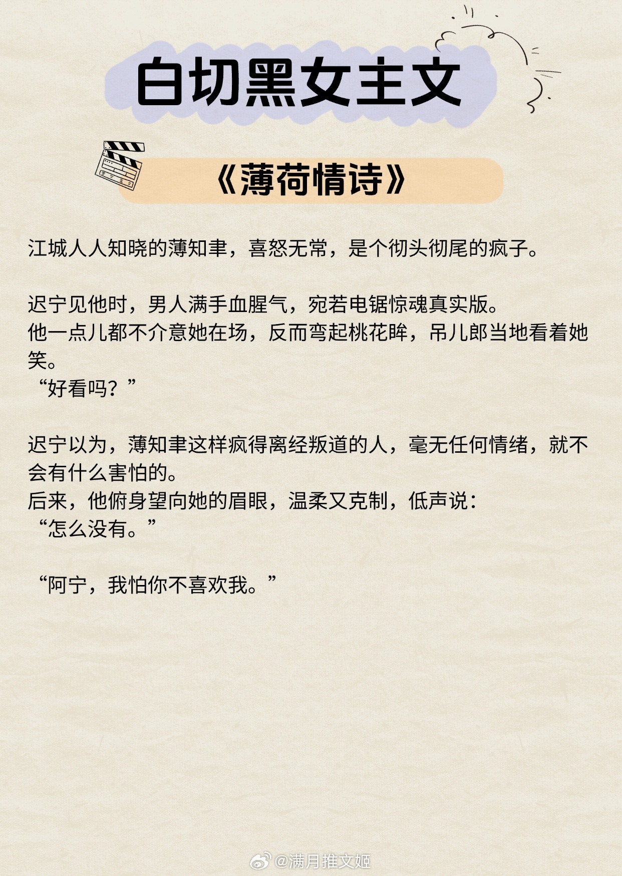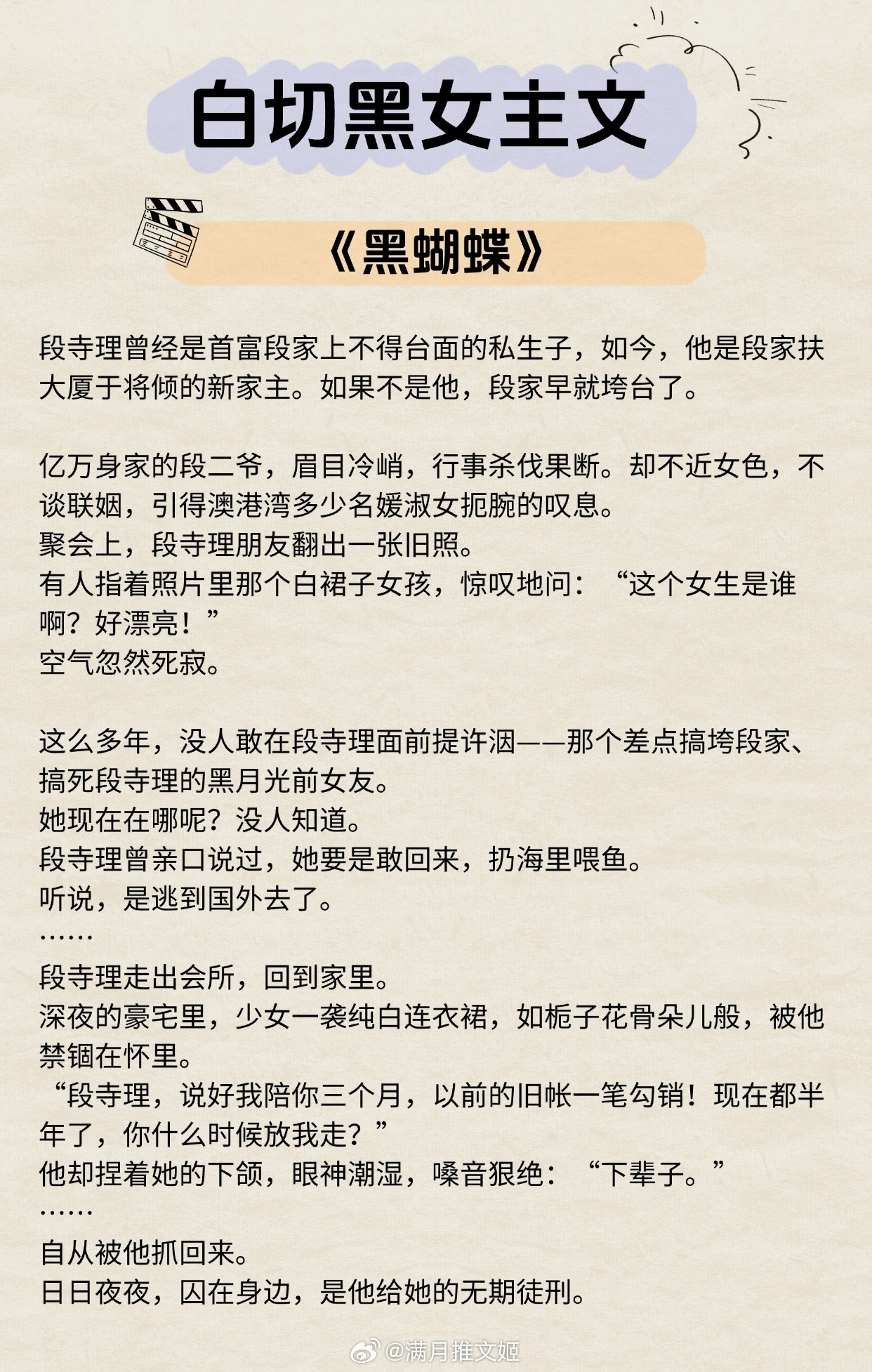 【白切黑女主文】“一天的意义,取决于看到她几次。”《灯花笑》作者:千山茶客《她真的很难追》作者:八月于夏《黑蝴蝶》作者:春风榴火《薄荷情诗》作者:从聆《我的危险夫人》作者:归山玉《祸水如她》作者:盛晚风《秘书》作者:因浓《笼中春色》作者:羁旅人《锦书繁华》作者:陈洛福推文言情小说推荐推文