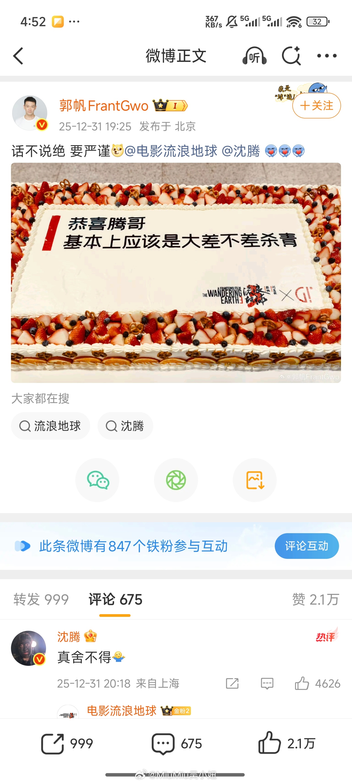 流浪地球3哈哈哈看到热搜我还以为今年能看了没想到是明年~为期一年的预热也是希望能等出一个未来不过今年好像可以看飞驰人生3!电影飞驰人生3定档春节