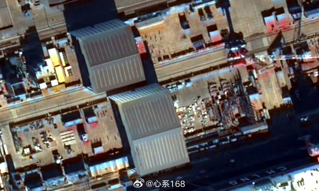 北方某地004船坞旁的堆料区 右侧连004的球鼻首都拍到了,加油造!图源见水印烽