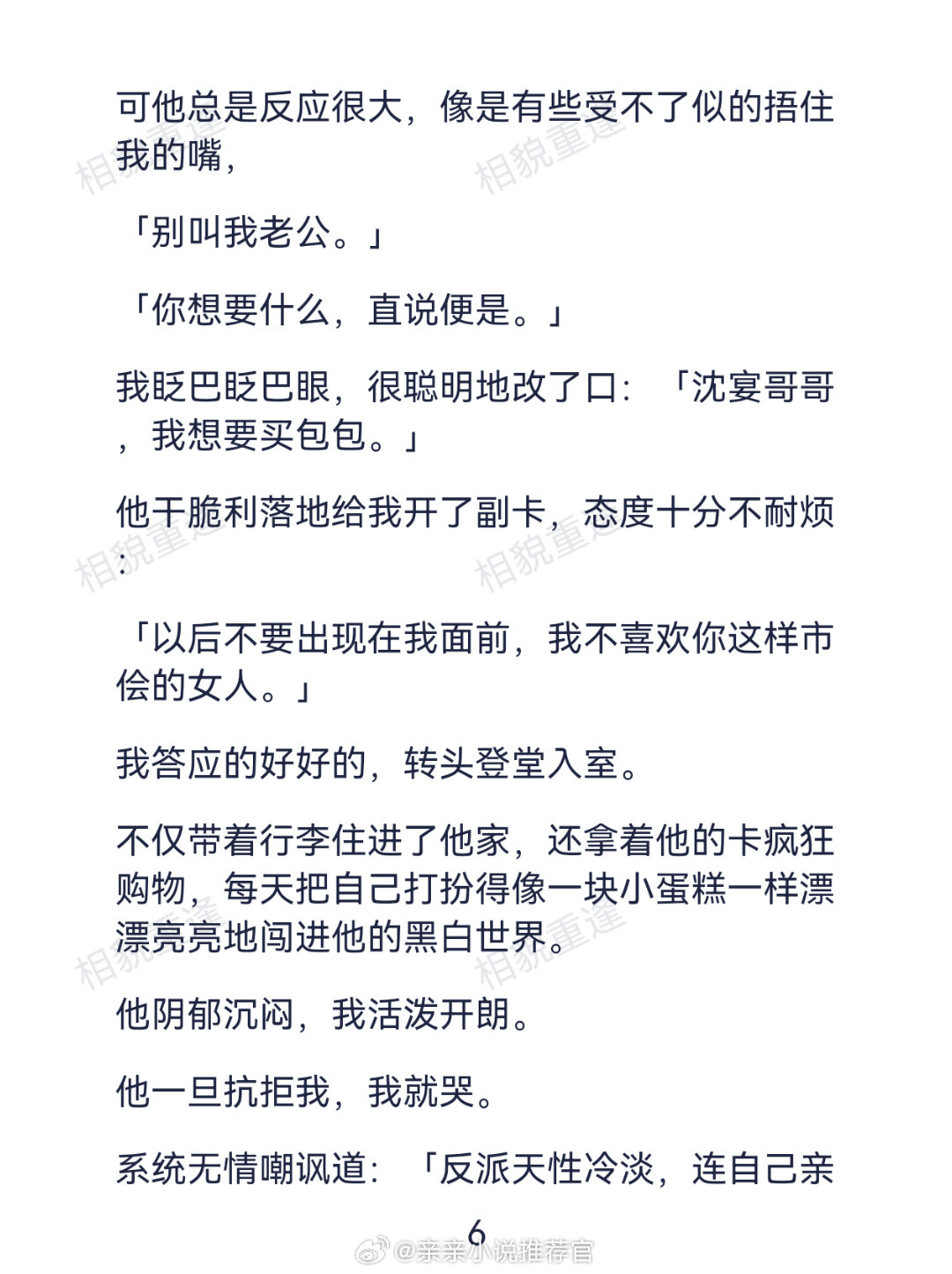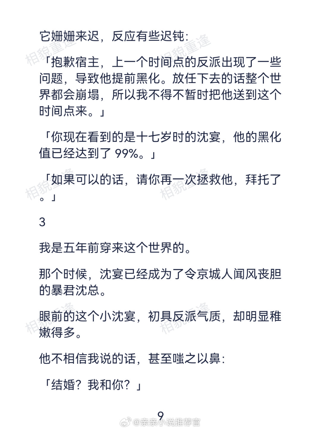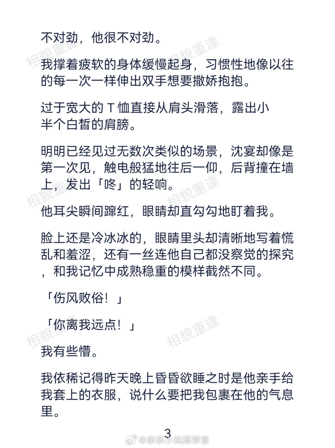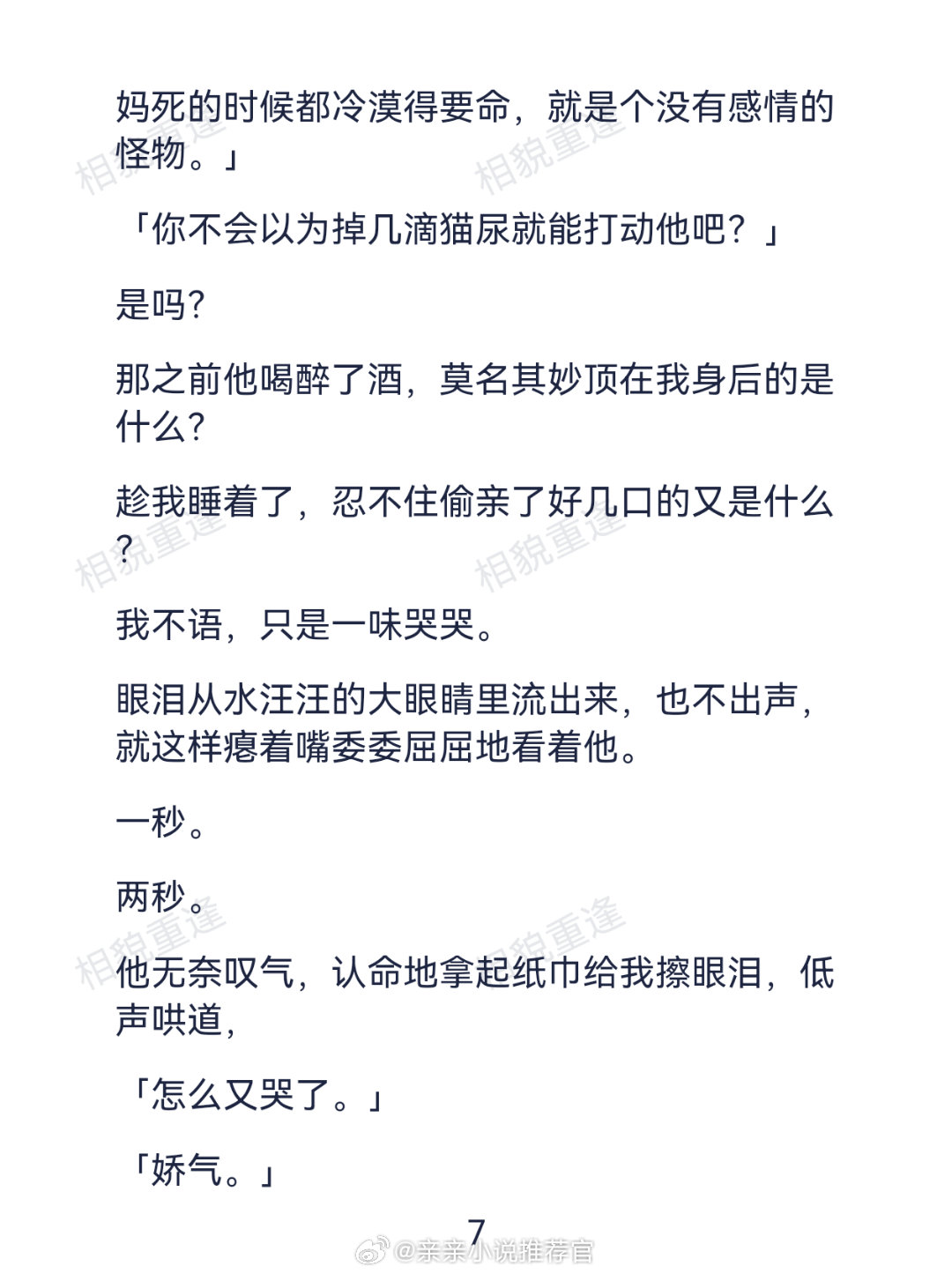 言情小说《相貌重逢》现代言情小说脑洞系统文一觉醒来,老公突然变回了十七岁的模样。他不信自己结了婚,红着脸咬牙道:「我就是死,也不会娶你这样…低俗的女人。」可他话还没说完,门外和他长得一模一样的男人阴沉着脸走进来。我软软开口:「老公,抱。」「都说了我不是你老公!」「她喊的是我。」男人阴沉着脸将我抱起,低哑嗓音裹着不容置疑的气场和藏不住的怒火。「谁叫你了?自作多情。」