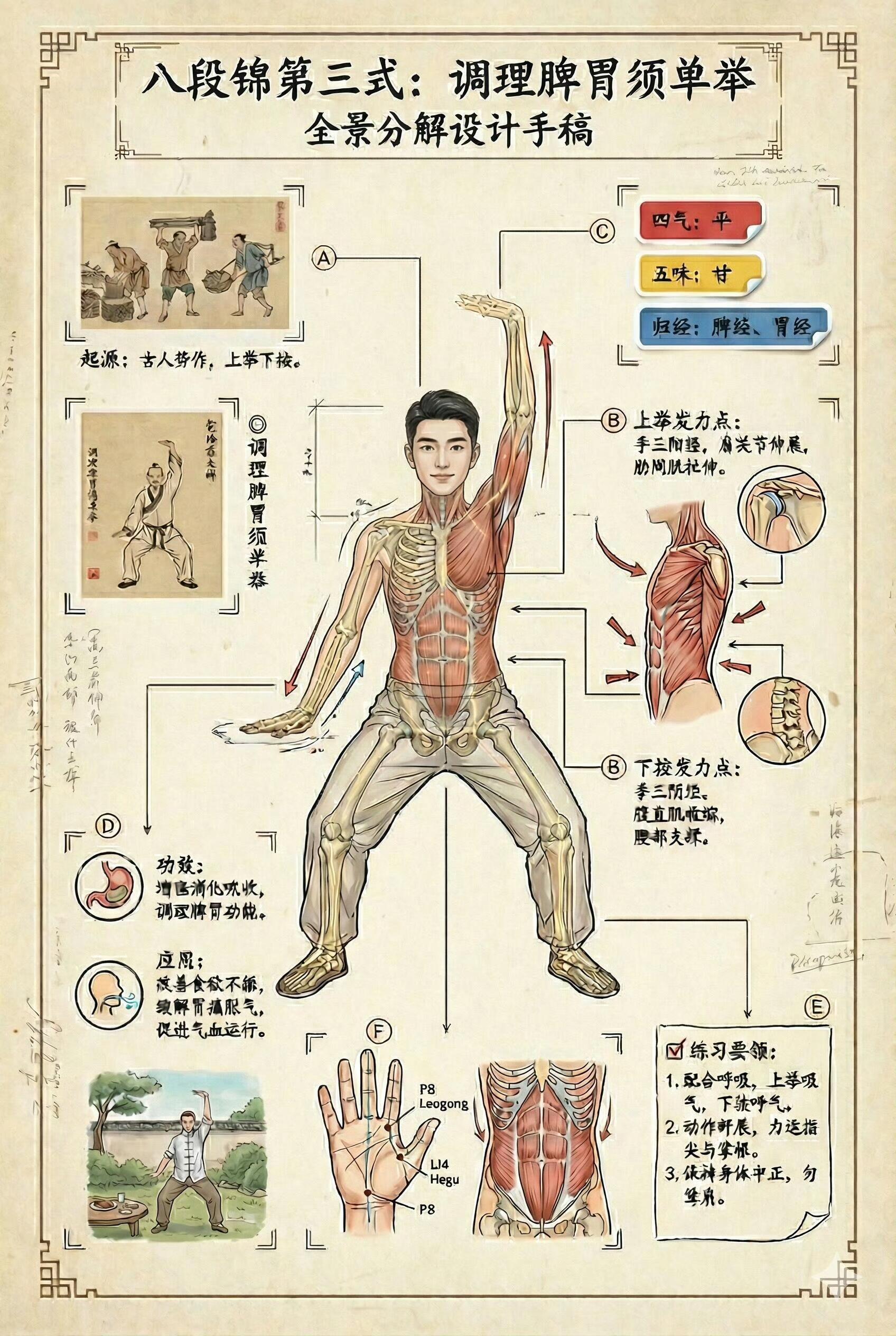 八段锦的分解动作,以及锻炼身体的部位详解国医的精诚力量