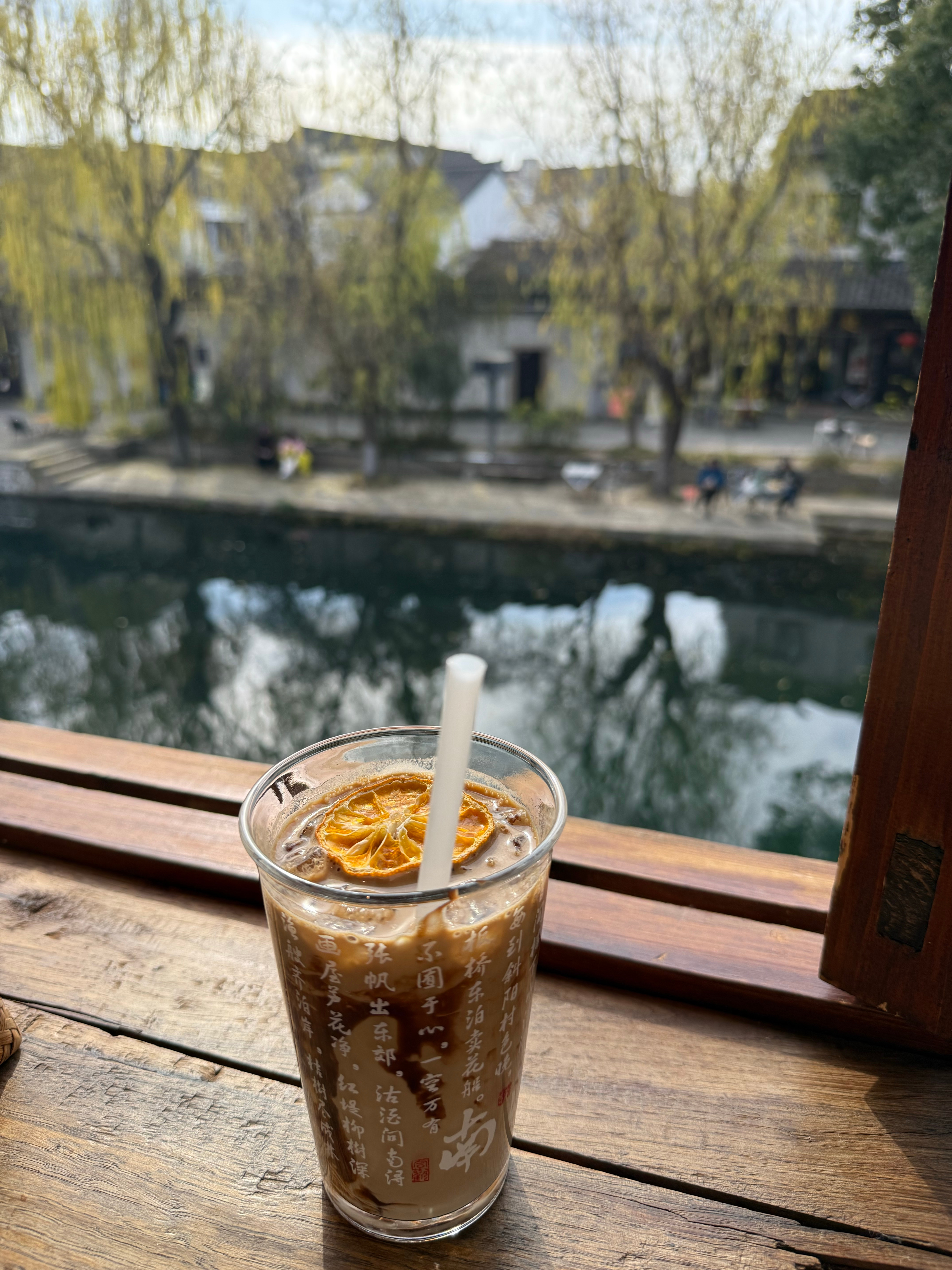 在古镇的石桥上,优雅地坐着,享受宁静的时光。