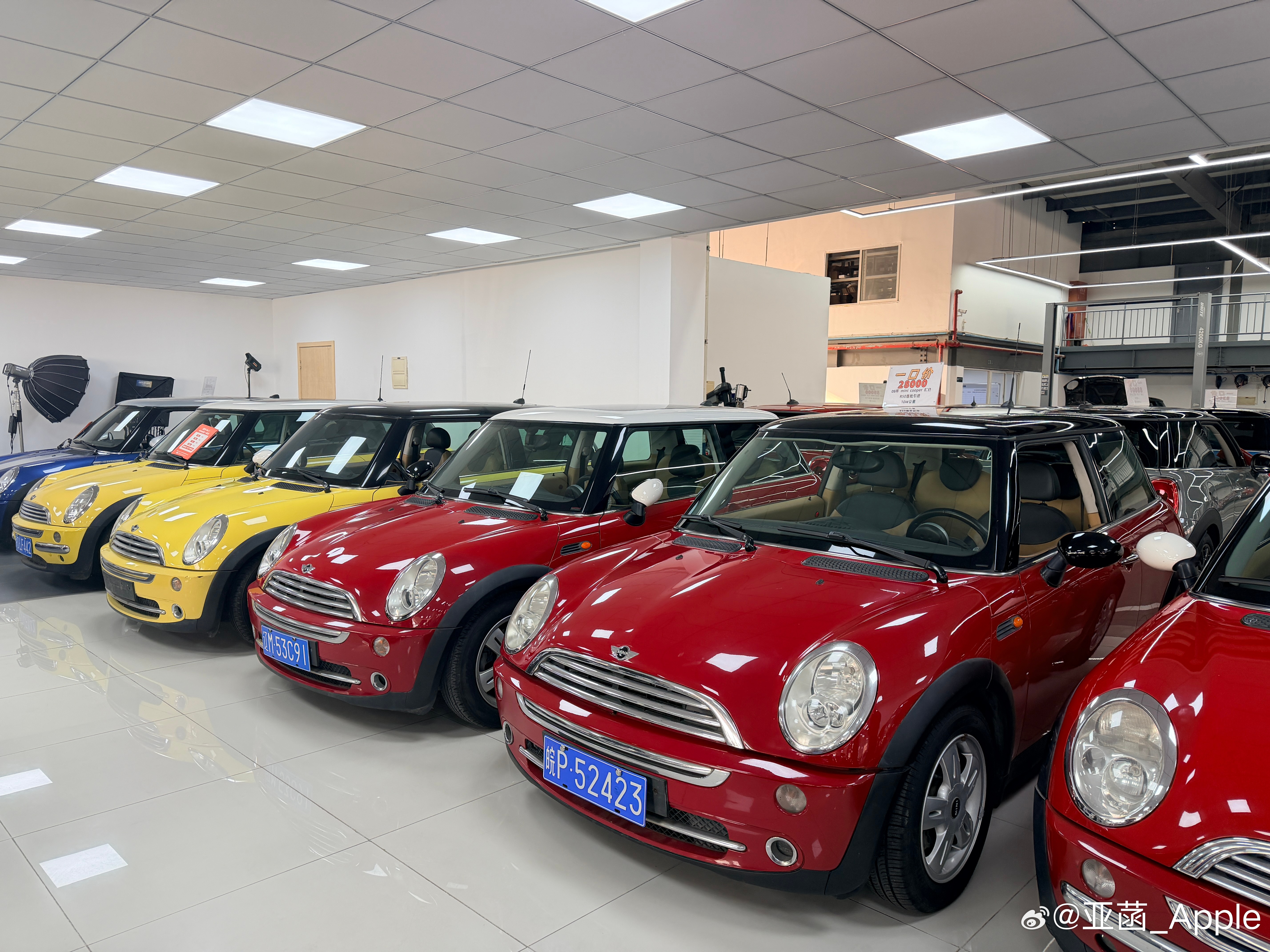 今天陪朋友买MINI 一进展厅oh my god 简直掉进MINI窝了 价格从两万多到138万不等各种颜色各个年份的MINI 朋友一整个挑花眼菡你来看车汽场全开