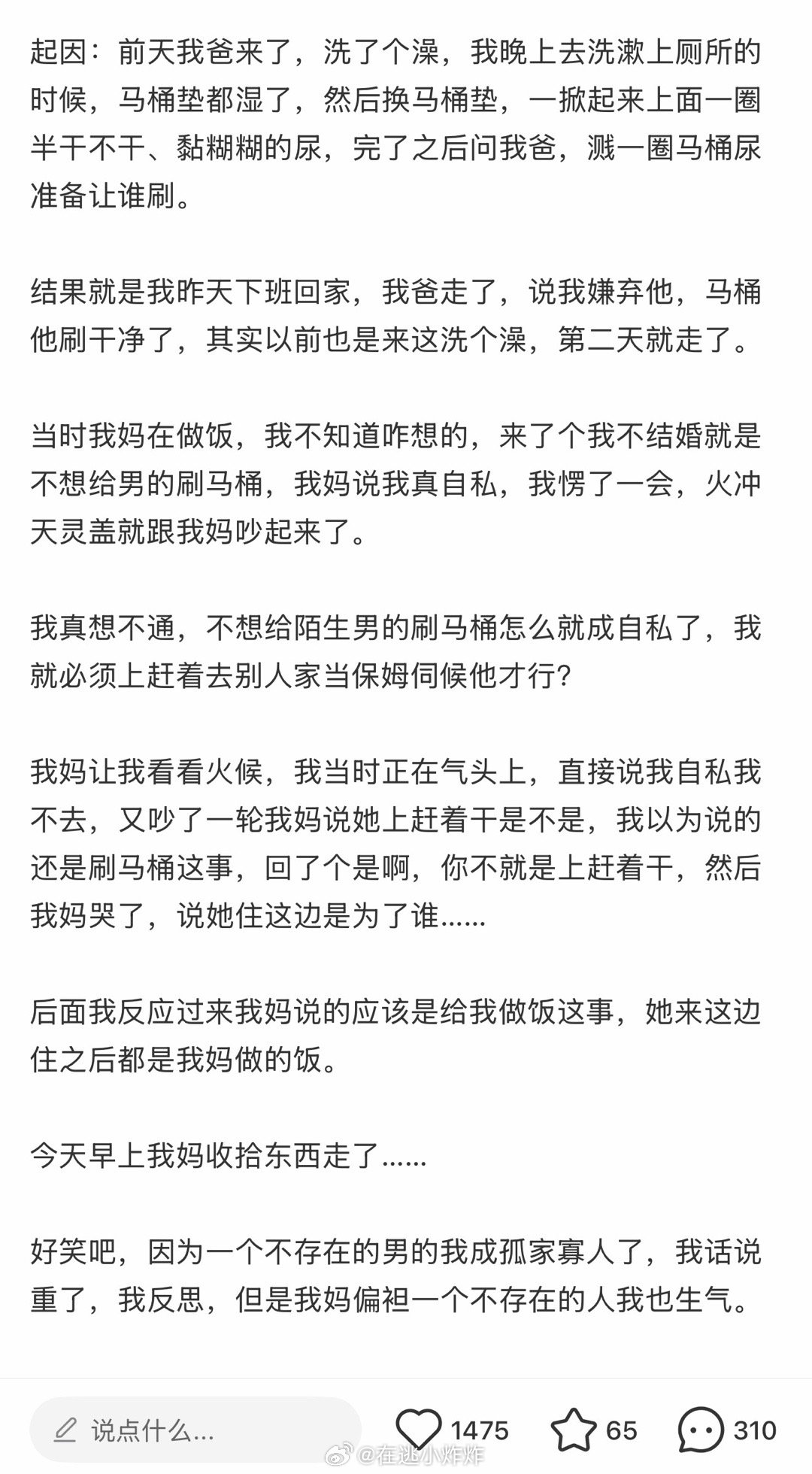 “不想给不存在的男人刷马桶”是自私吗感觉老一辈就是默认女人要照顾男人的我懒得做饭,经常点外卖吃我妈就老说我“你这样以后结婚了怎么办”我说,能怎么办,一起点外卖呗我妈就说,你就不能学学做饭,以后给你对象做口饭吃