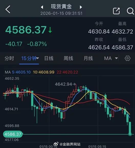 【特朗普突发举动引爆大行情!银价刚刚暴跌近6% 金价大跌40美元 怎么回事?】 周四(1月15日)亚市盘中,现货白银暴跌近6%跌破88美元/盎司,原因是特朗普暂缓对关键矿产进口加征新关税(未排除未来可能)及投资者获利了结。受此拖累,现货黄金跌至4586美元/盎司附近(日内大跌40美元),铂金、钯金也走低。特朗普称将通过谈判达成双边协议确保关键矿产供应,缓解市场对相关关税的担忧。此前周三金属普涨刷新高位,因避险需求、中美买盘及资金流入大宗商品。贵金属涨势还受特朗普威胁美联储支撑,但多数美联储官员不支持本月降息,短期或施压贵金属,不过交易员仍定价到7月一次、年底累计两次降息。详情:网页链接