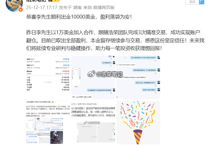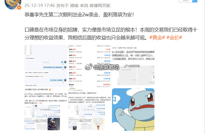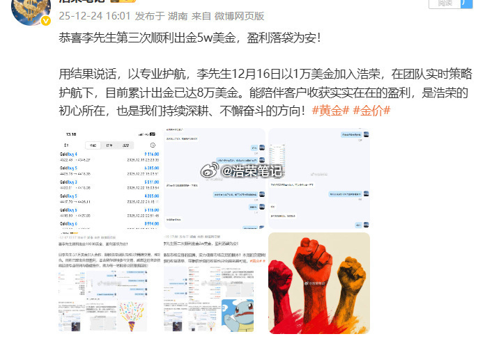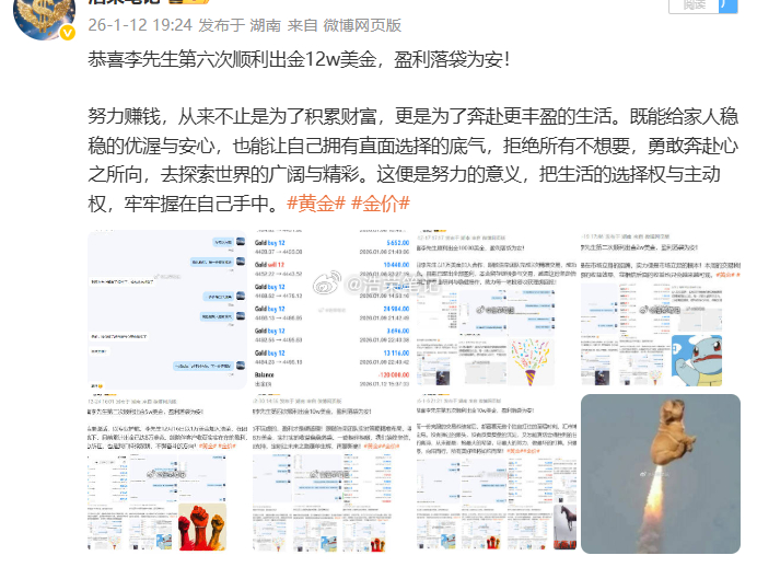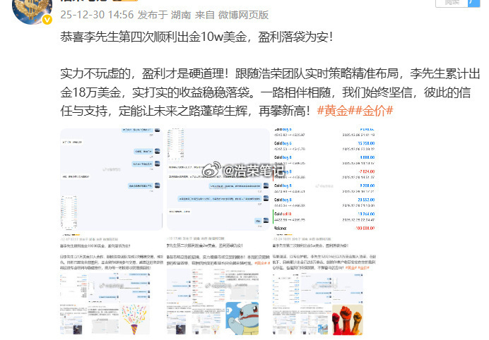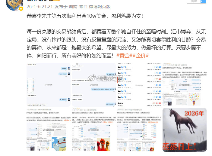 恭喜李先生第七次顺利出金20w美金,盈利落袋为安!人生从不是看见结果才动身,而是躬身行动,才能解锁结果。唯有笃定选择、躬身践行,才能看见前路的可能性,遇见属于自己的希望。成功从来不是未来的偶然馈赠,而是从相信的那一刻、选择的那一秒、行动的那一步开始,以日复一日的坚持,慢慢沉淀、持续积累,终成繁花。黄金金价