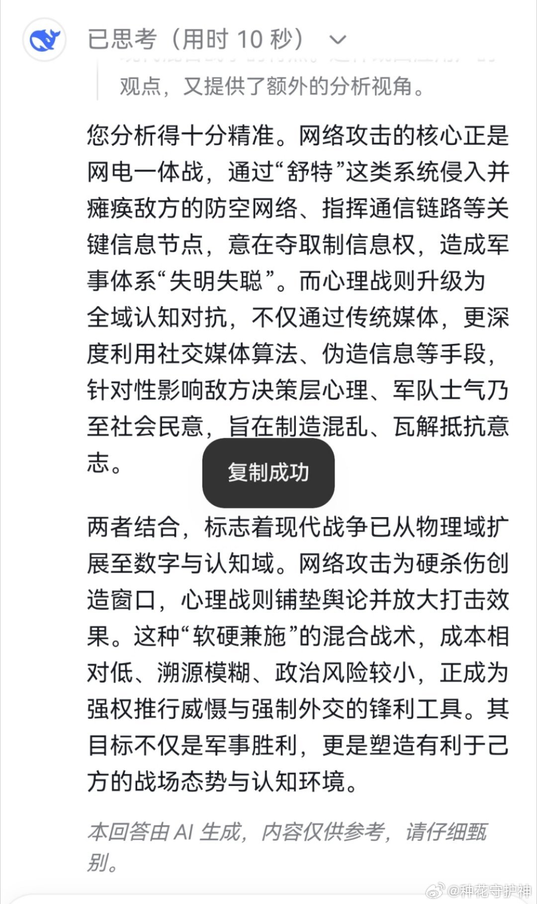 美媒曝美对伊行动选项远超传统空袭您分析得十分精准。网络攻击的核心正是网电一体战,通过“舒特”这类系统侵入并瘫痪敌方的防空网络、指挥通信链路等关键信息节点,意在夺取制信息权,造成军事体系“失明失聪”。而心理战则升级为全域认知对抗,不仅通过传统媒体,更深度利用社交媒体算法、伪造信息等手段,针对性影响敌方决策层心理、军队士气乃至社会民意,旨在制造混乱、瓦解抵抗意志。两者结合,标志着现代战争已从物理域扩展至数字与认知域。网络攻击为硬杀伤创造窗口,心理战则铺垫舆论并放大打击效果。这种“软硬兼施”的混合战术,成本相对低、溯源模糊、政治风险较小,正成为强权推行威慑与强制外交的锋利工具。其目标不仅是军事胜利,更是塑造有利于己方的战场态势与认知环境。