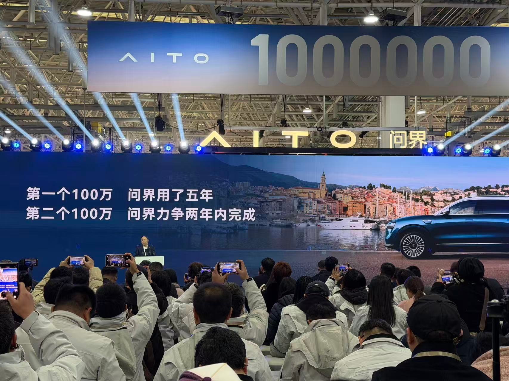 今年问界第100万辆下线,一台顶配的问界M9,1到100万,又是一个里程碑的意义。问界M9,可以说是问界品牌向上最重要的一款产品,功能、体验、设计在线,销量、NPS、保值率领先,12月上险9222台,要知道这台车已经累计20个月稳居50万元以上车型销量第一,说是标杆不过分的。下一个百万,问界要在两年内完成。问界M9赛力斯大v聊车